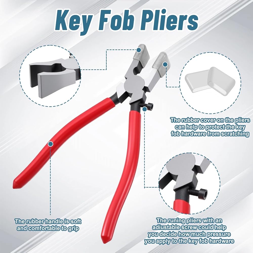 Protective Key Fob Hardware Set:Equipped with rubber caps and adjustable screws, these pliers prevent scratches on Lanyard key fob hardware and let you control pressure precisely for a secure crimp. The soft red PVC cushioned handles reduce hand fatigue, making crimping and installation effortless (even for extended craft sessions).