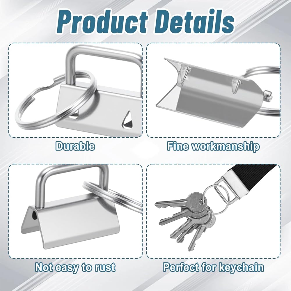 Durable:Key Fob Hardware 1 Inch Metal Alloy Key Crafted from heavy-duty metal alloy (1-inch width), this key fob hardware is sturdy and long-lasting. Each piece comes with an attached key ring for easy key attachment, perfectly sized for making key lanyards, webbing wristlets, and custom keychains.