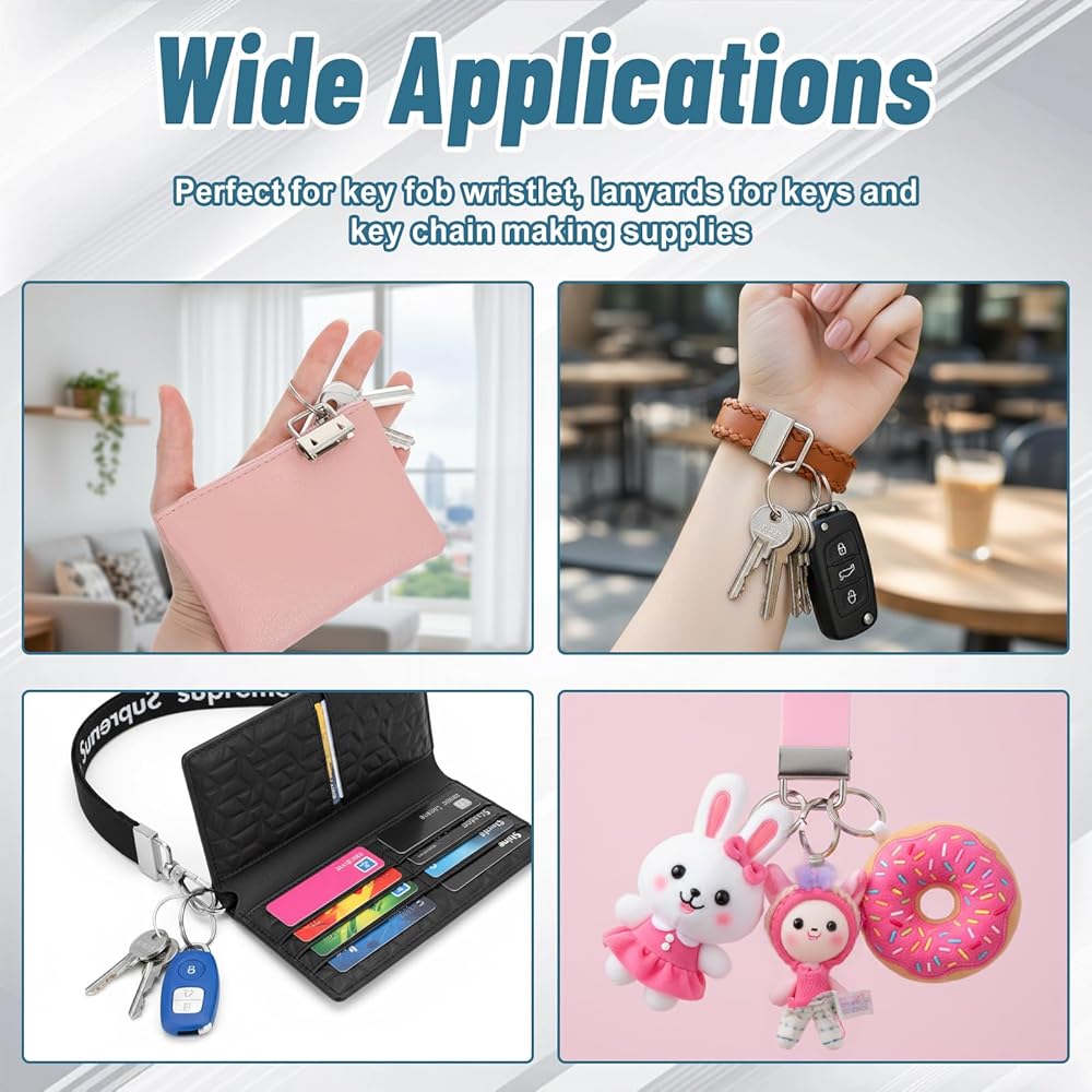 Versatile for All Keychain & Craft:This all-in-one key fob hardware works with fabric, ribbon, webbing, and embossed materials—perfect for creating key fob wristlets, key lanyards, keychain hardware, and other DIY keychain making supplies. Ideal for personal use, gifting, or small-scale craft projects.