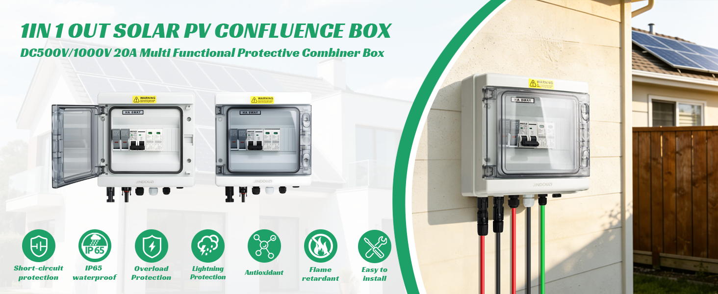 صندوق تجميع الطاقة الشمسية 1 في 1 - تم تصميم صندوق تجميع الطاقة الشمسية هذا لتحسين الاتصال بين المصفوفات الكهروضوئية (PV) والعاكسات. وهو يدعم مجموعة واحدة من مدخلات اللوحة الكهروضوئية ومجموعة واحدة من مخرجات الطاقة، مع تيار إدخال أقصى يبلغ 20 أمبير لكل سلسلة وتيار إخراج أقصى يبلغ 20 أمبير لقاطع الدائرة. وهو يدعم ما يصل إلى 20 كيلو واط من الطاقة في نظام 1000 فولت. وتوفير وظائف الجهد الزائد والحمل الزائد والفصل السريع لضمان سلامة النظام الكهروضوئي.
