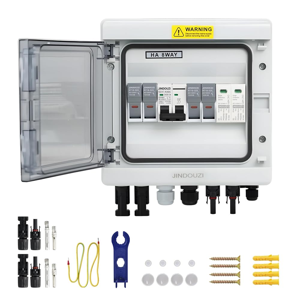 صندوق الدمج المثبت على الحائط - يأتي صندوق الدمج الشمسي مزودًا بوصلات داخلية سلكية مسبقًا. يلزم توصيل الموصلات الكهروضوئية وكابلات طاقة الإخراج والأسلاك الأرضية فقط. تتضمن الحزمة موصلات كهروضوئية متطابقة وأدوات خاصة بالكهروضوئية وأسلاك أرضية ومسامير تثبيت. حتى بدون وجود كهربائيين محترفين، يمكن إكمال التركيب السريع بسهولة ويسر.