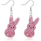 Easter Earrings for Women Glitter Bunny Drop Earrings Cute Colorful Acrylic Rabbit Dangle Earrings For Happy Easter Day Jewelry
