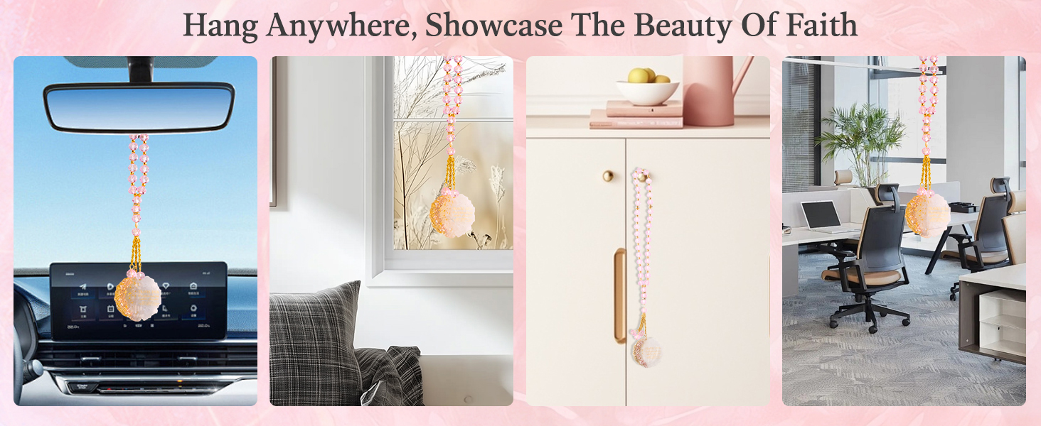 الحماية الروحية في رحلتك - إكسسوارات السيارة الإسلامية الخاصة بنا ذات اللون الوردي متجذرة بعمق في التقاليد، مما يرمز إلى الحماية الروحية والبركات أثناء السفر. من خلال تعليق هذه الزينة المعلقة لسيارة الله في سيارتك، فإنك تخلق جوًا هادئًا يذكرك دائمًا بوجود الله وحمايته أثناء رحلاتك. ستشعر بإحساس عميق بالأمان والسلام، وتحول كل رحلة إلى فرصة للتأمل والتواصل مع إيمانك. إكسسوارات السيارة الإسلامية للنساء هي أكثر من مجرد ديكور للسيارة؛ يصبح مصدرًا للراحة والقوة، مما يسمح لك باحتضان جمال كل تجربة سفر بشكل كامل.