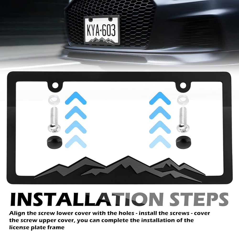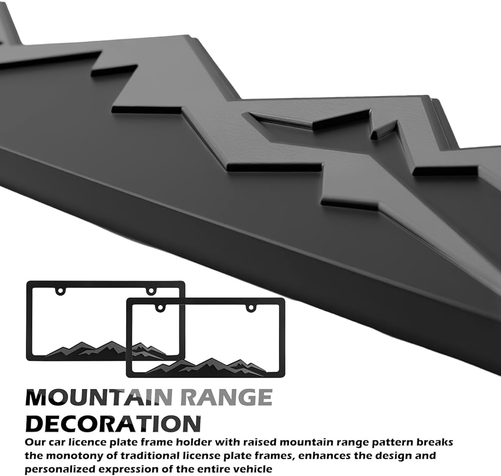 • Mountain Range Decoration: Our car licence plate frame holder with raised mountain range pattern breaks the monotony of traditional license plate frames, enhances the design and personalized expression of the entire vehicle, and makes the vehicle license plate area more fashionable and beautiful