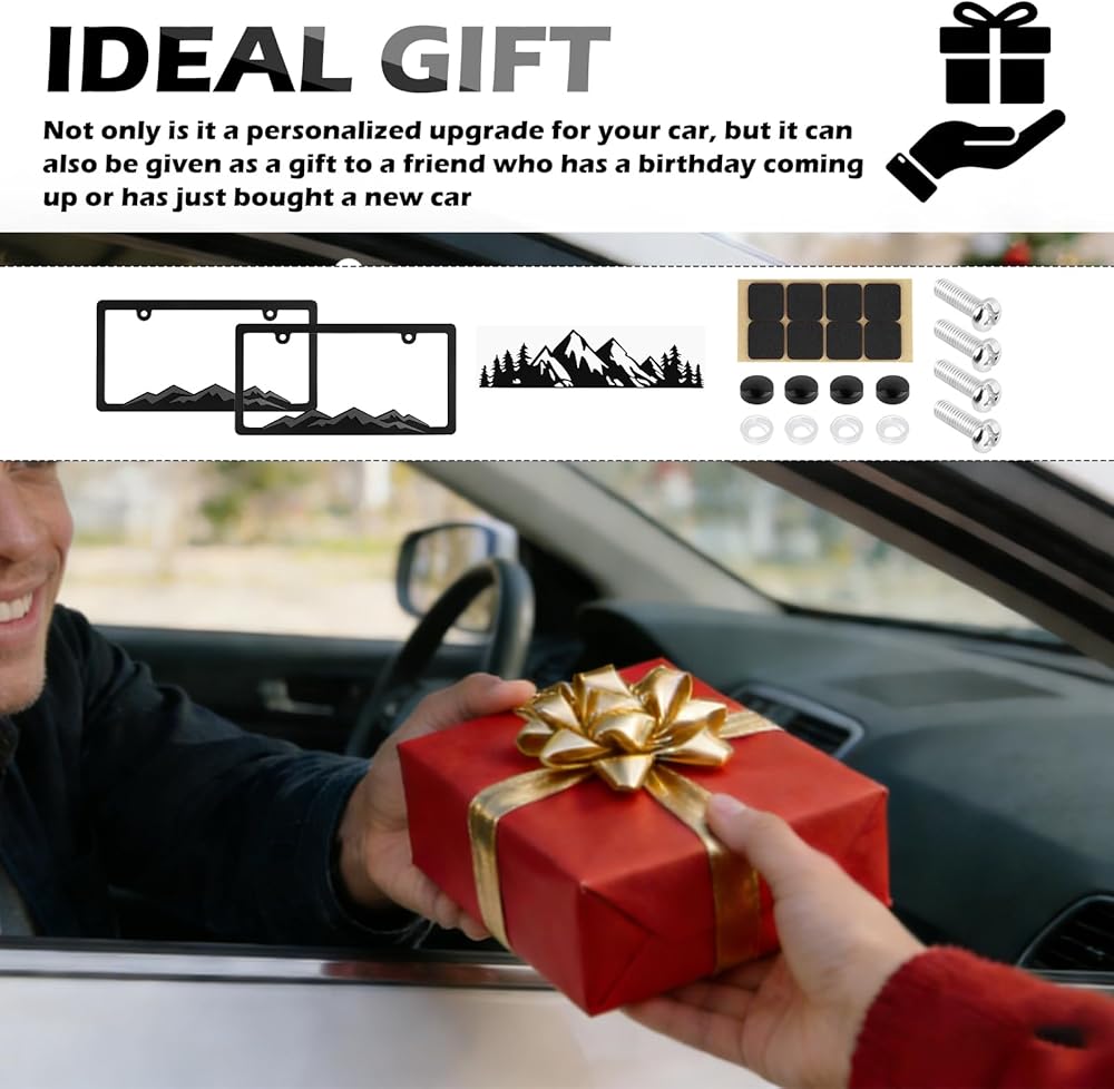 • Stylish Stickers: In the car tag frame package, in addition to some of the necessary accessories, we have also prepared a mountain sticker for you, whether it is affixed to the door or the location of the trunk of the vehicle is a good choice, and the license plate frame to form an echo