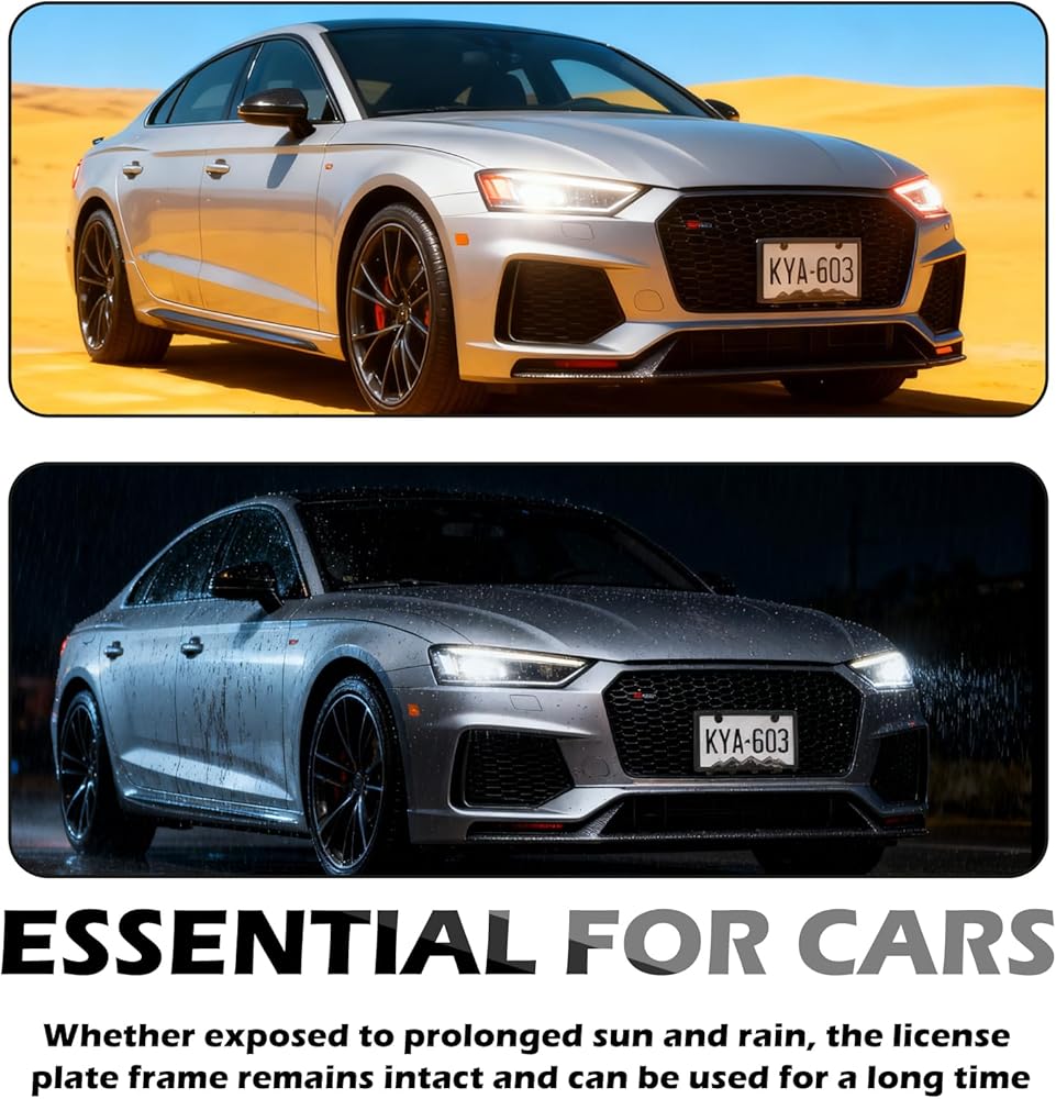 • Size: Our car plate frame comes with a mountain range pattern that is about 1.63 inch wide, and the total size of the product is 12.28*6.28*0.27 inch, which is basically suitable if your license plate is a standard U.S. license plate, please measure the size of your existing license plate first