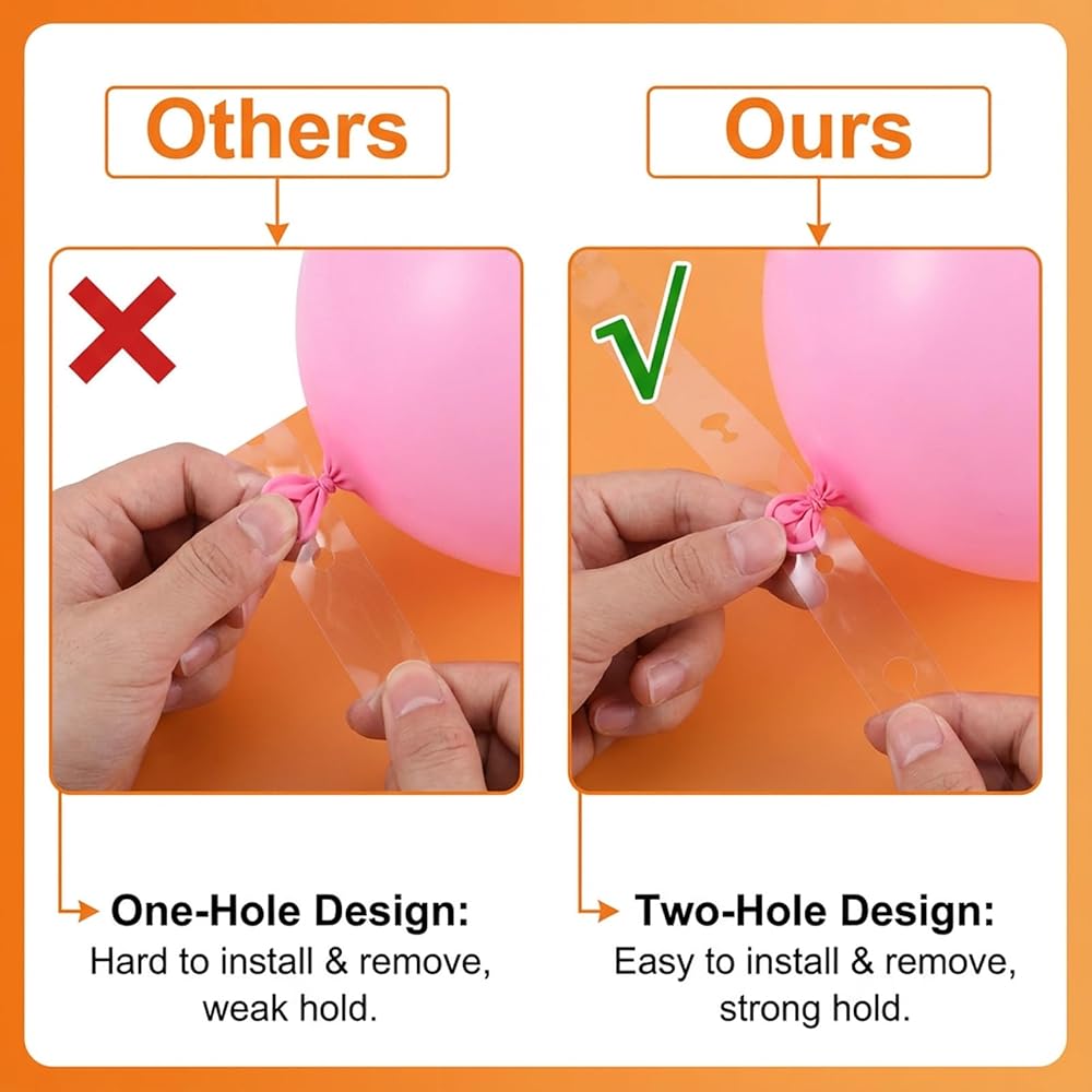 Easy Assembly: The two-hole design of our balloon arch strip simplifies the process of securing balloons. Pull the knots into the larger hole and slide them into the smaller hole for a firm hold.