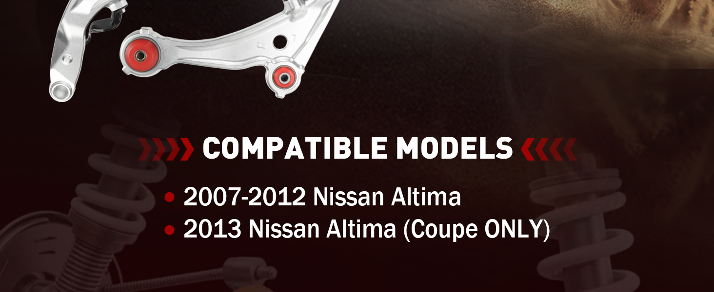 توافق استثنائي: مجموعات ذراع التحكم السفلية متوافقة تمامًا مع OEM وسوف تناسب سيارتك تمامًا. يمكن أن تتوافق مع 2007 2008 2009 2010 2011 2012 نيسان ألتيما، 2013 نيسان ألتيما (كوبيه فقط).