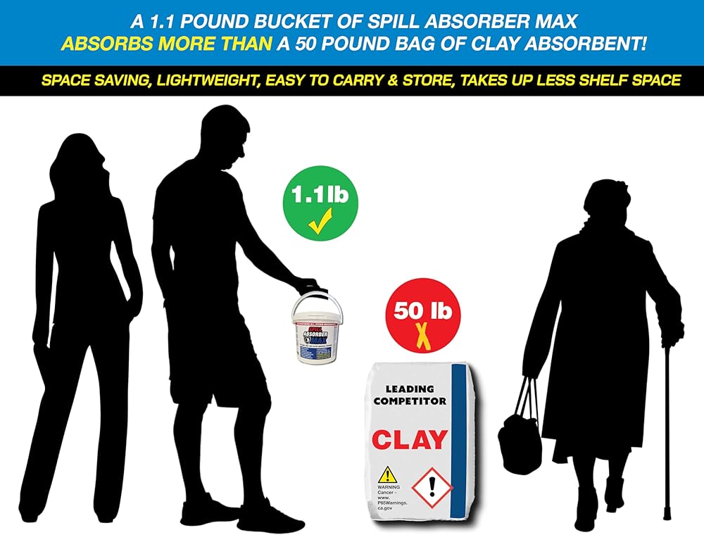 1.1 lb bucket absorbs as much as a 50 pound bag of clay absorbent