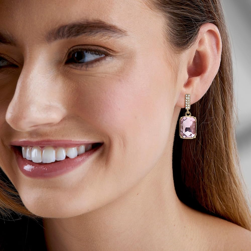 - أقراط من الذهب الأصفر عيار 14 قيراط فوق النحاس ومرصعة بالزركونيا المكعبة للنساء.