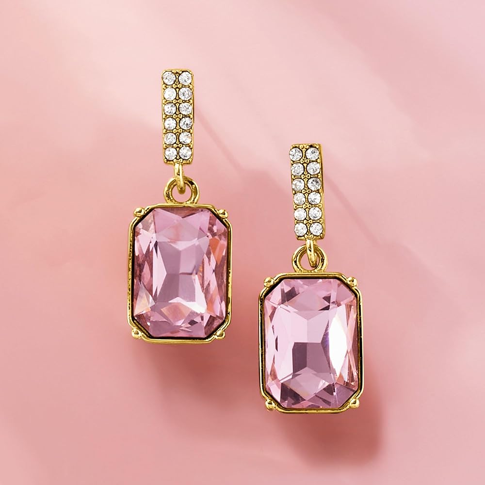 أقراط روس سيمونز مطلية بالذهب الأصفر عيار 14 قيراط مرصعة بأحجار كريمة وردية مقلدة و0.48 قيراط. t.w. تشيكوسلوفاكيا