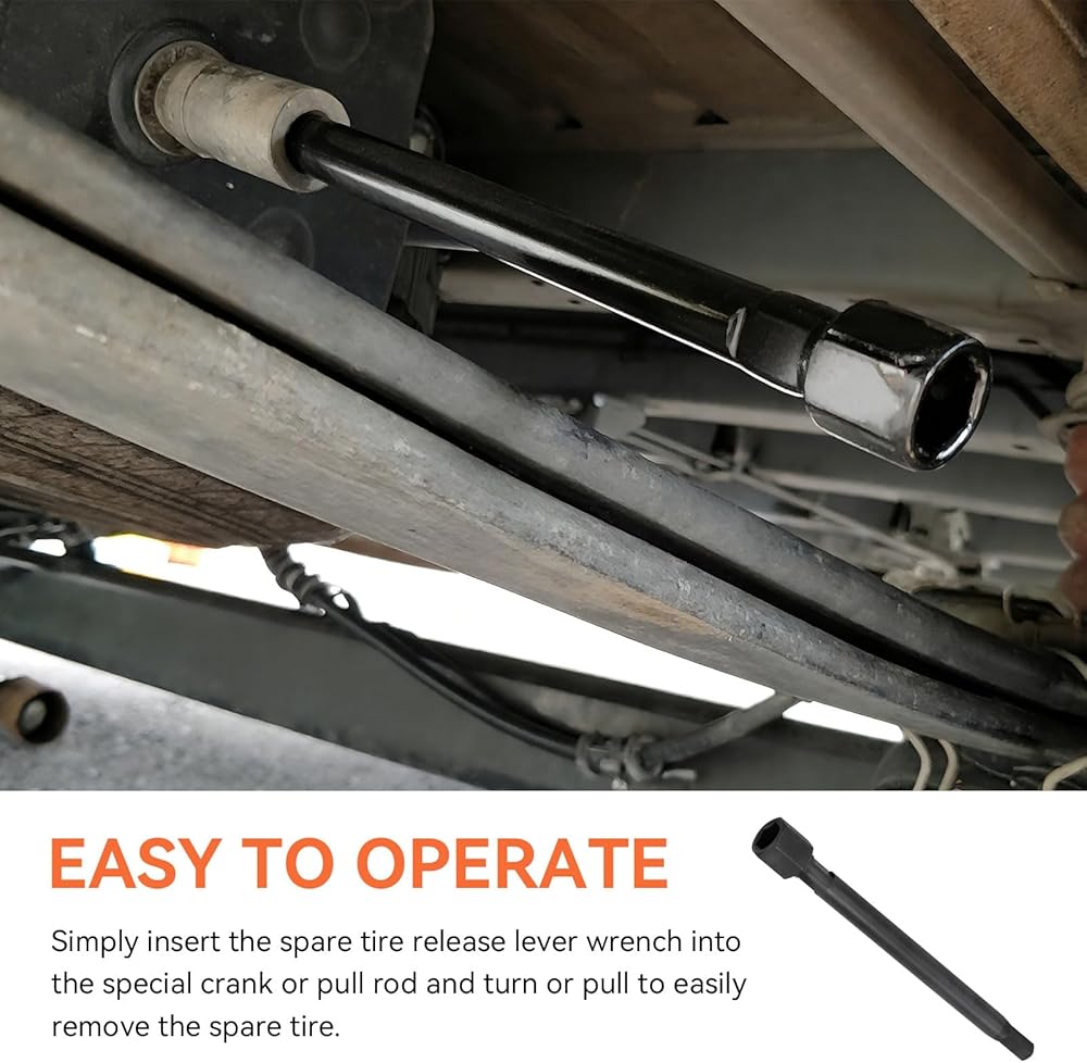 【Easy to Operate】Simply insert the spare tire release lever wrench into the dedicated crank or pull rod, then rotate or pull to easily remove the spare tire secured by the buckle. This not only saves the drivers effort but also significantly reduces the time required for tire replacement