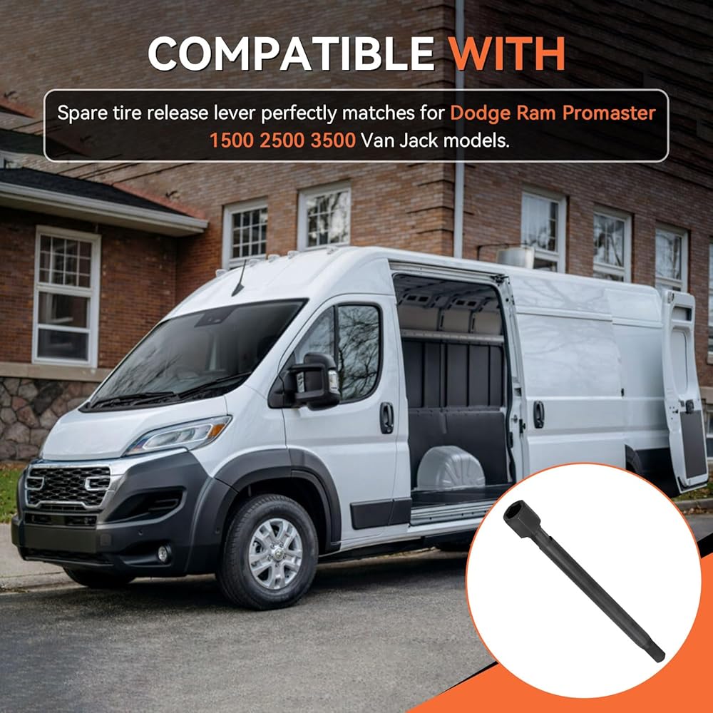 【Compatible With】Spare tire release lever perfectly matches Dodge Ram Promaster 1500 2500 3500 Van Jack models. Before purchasing this spare tire release bar, please confirm whether the model of your car and spare tire kit is suitable for it.