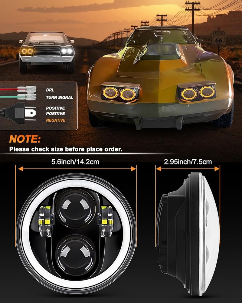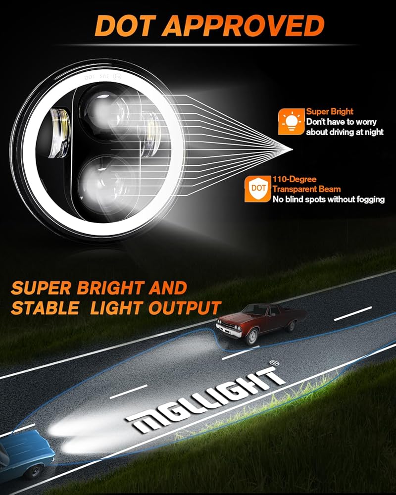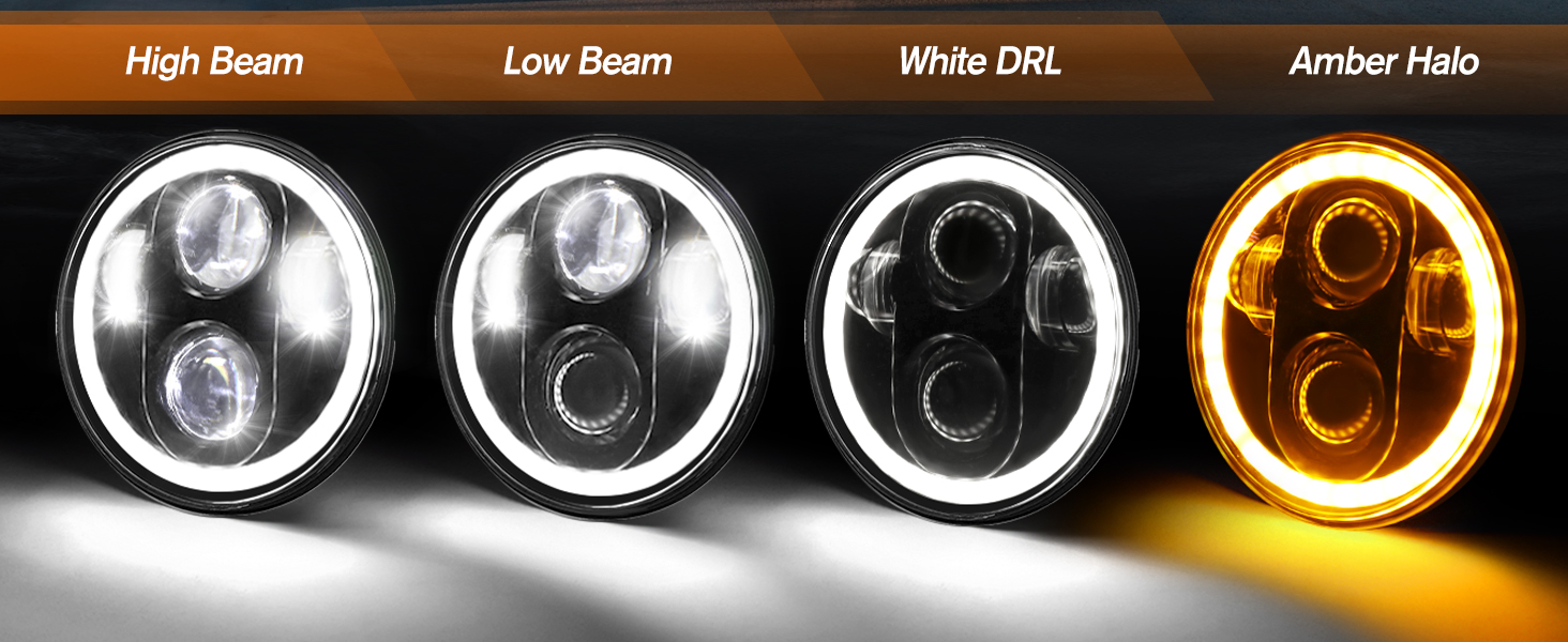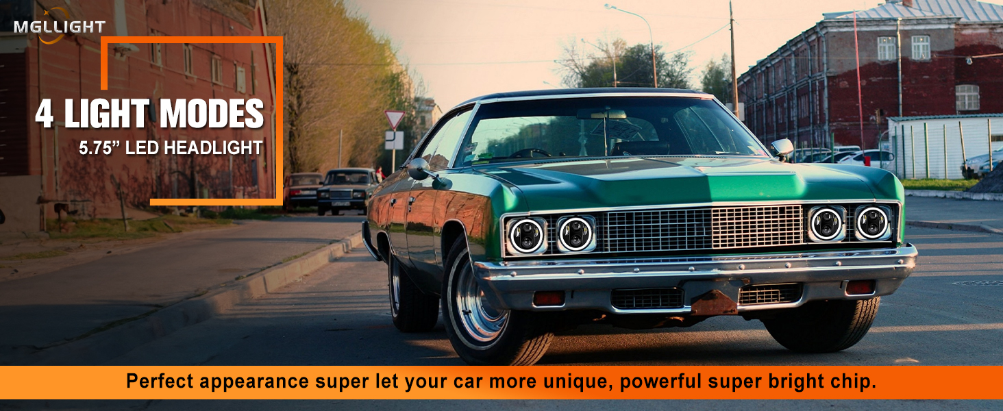 4 أوضاع إضاءة: مصباح أمامي MGLLIGHT 5.75 LED مع 4 أوضاع إضاءة. شعاع عالٍ، شعاع منخفض، إشارات انعطاف كهرمانية وحلقة هالة DRL بيضاء. يمكن أن يلبي هذا المصباح الأمامي مقاس 5-3/4 بوصة احتياجاتك المختلفة لقيادة مشرقة وآمنة على الطريق.