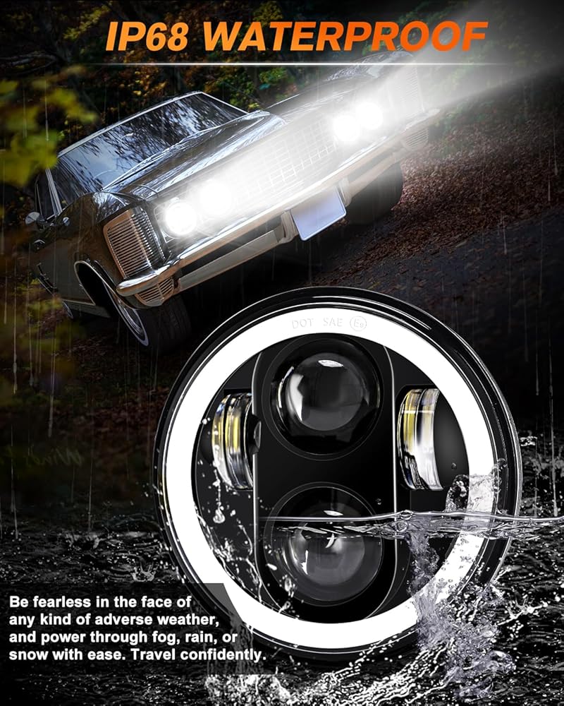 السطوع: المصابيح الأمامية LED مقاس 5.75 بوصة مصنوعة من رقائق عالية الكثافة، أكثر سطوعًا بنسبة 50% من المصابيح الأمامية الأخرى المشابهة مقاس 5.75 بوصة. 6500 لومن على الشعاع العالي، 4300 لومن على الشعاع المنخفض لكل مصباح أمامي. IP68 مقاوم للماء، عمر خدمة هذا المصباح يصل إلى 50000 ساعة.