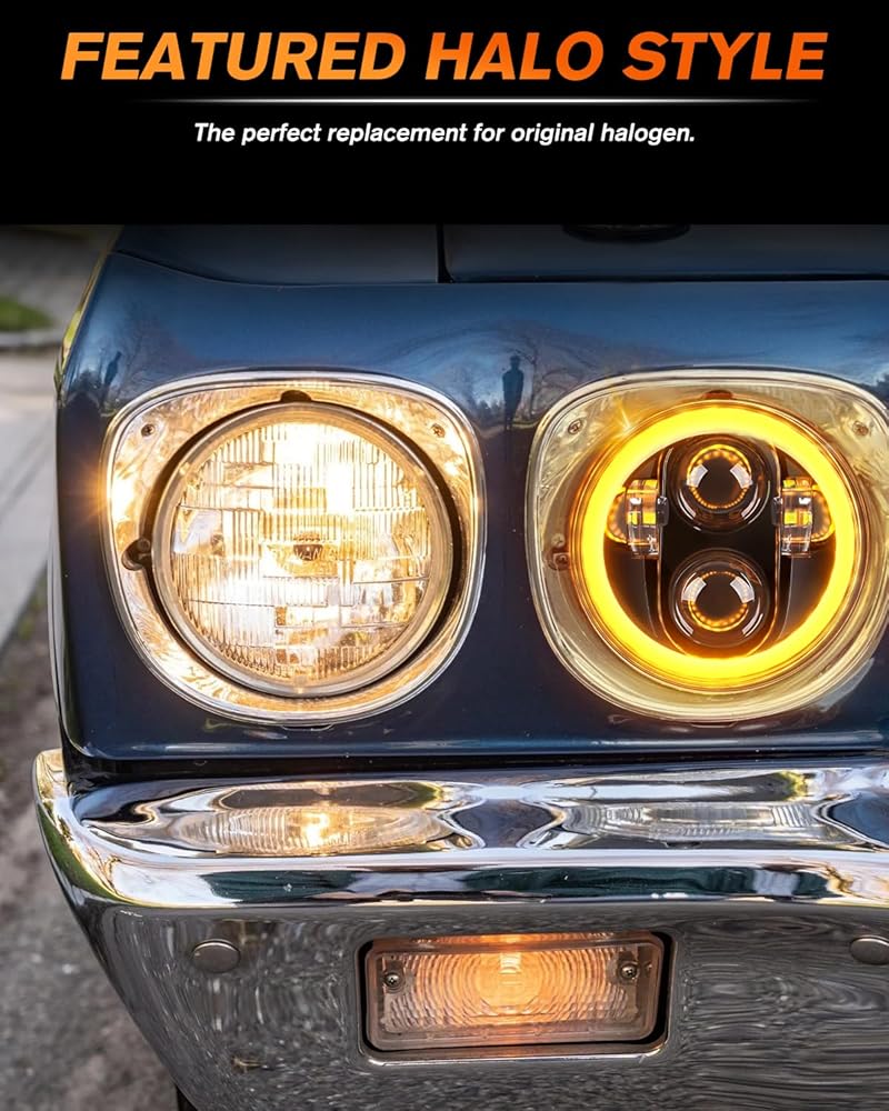 مصباح أمامي LED 5 3/4 5.75 بوصة مع مصباح أمامي Amber Halo DRL LED لجهاز عرض مختوم متوافق مع Kenworth W900 Challenger Gran Torino P-eterbilt 352 (4 قطع)