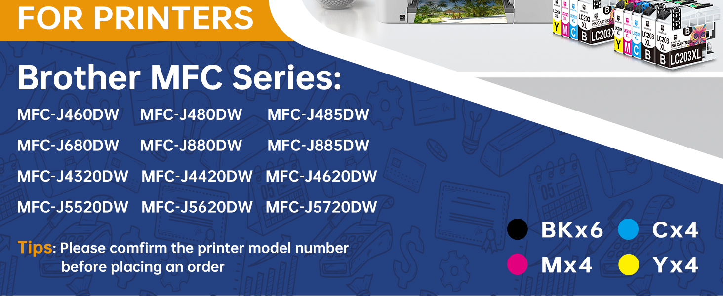 أداء ممتاز: خراطيش الحبر lc203 المطورة متوافقة تمامًا مع الطابعة بنسبة 100%. يوفر حبر LC203 المصمم خصيصًا نصًا حادًا وألوانًا زاهية.