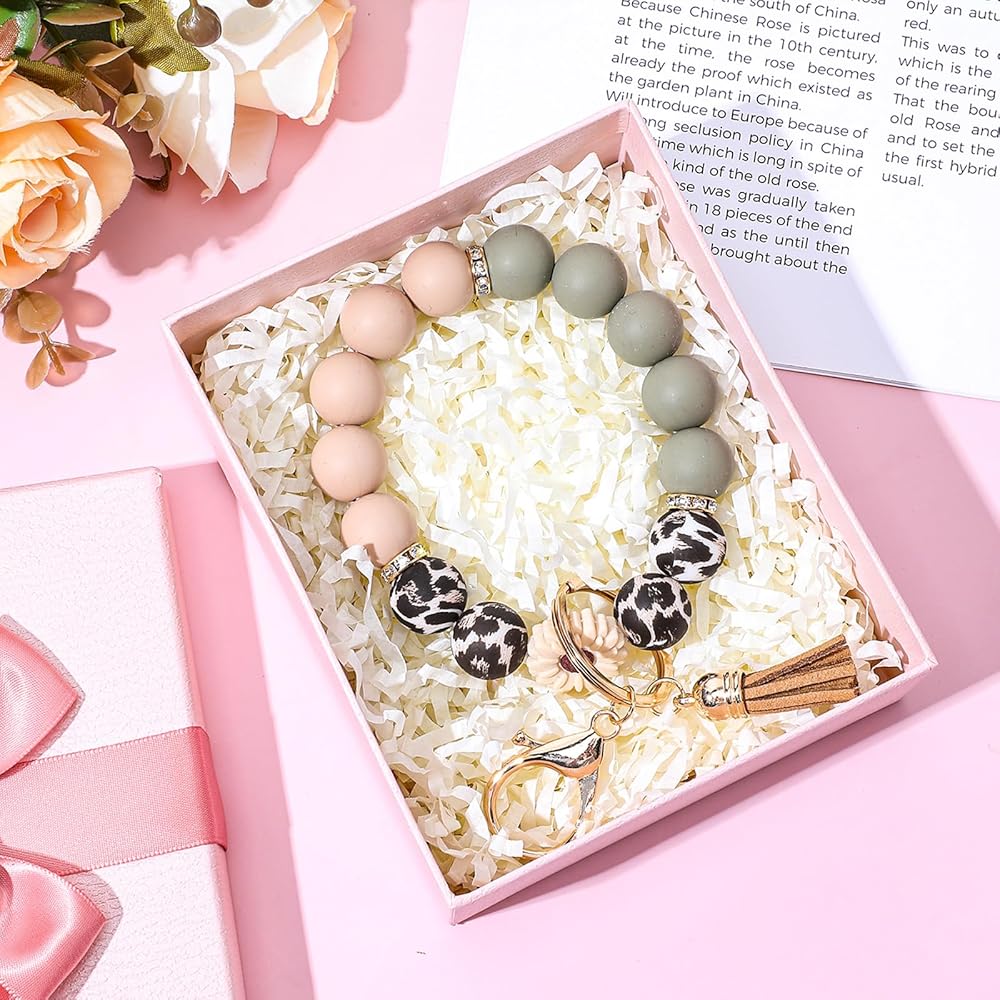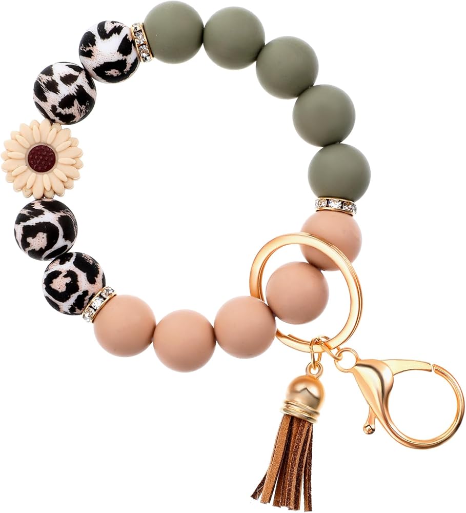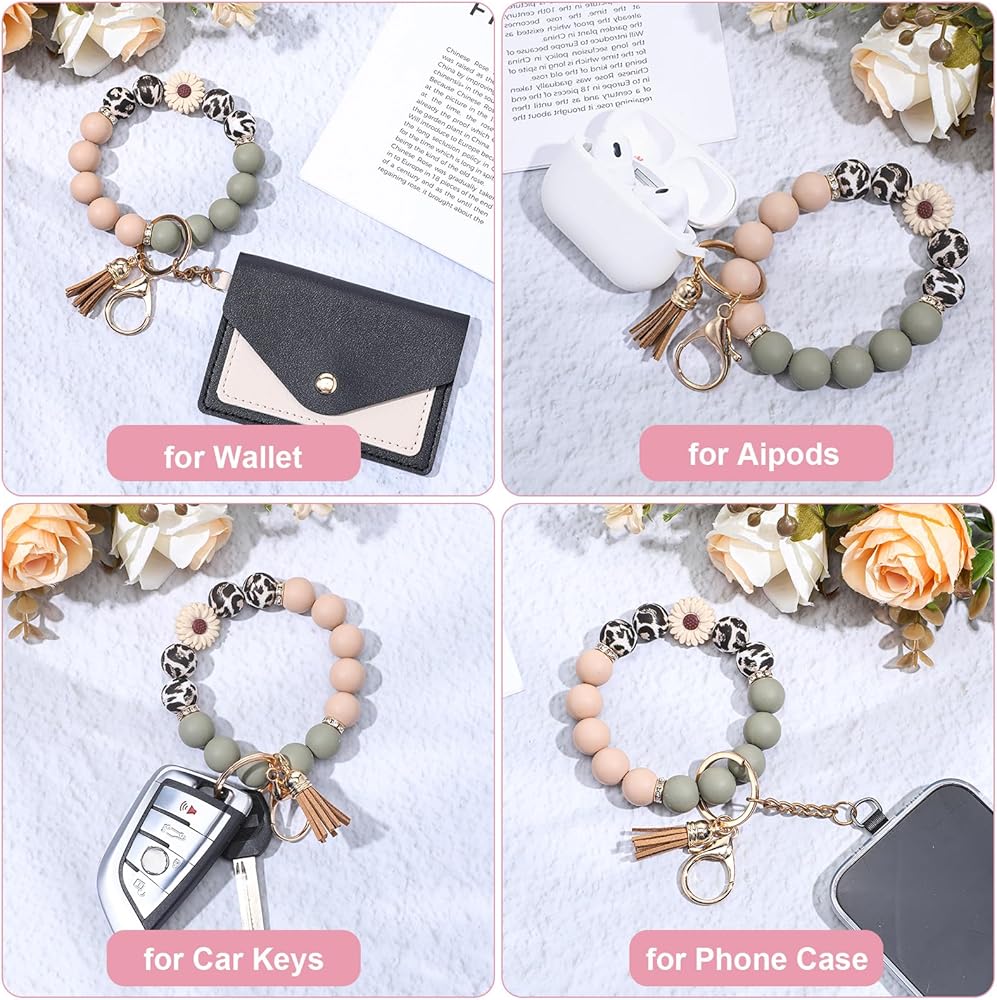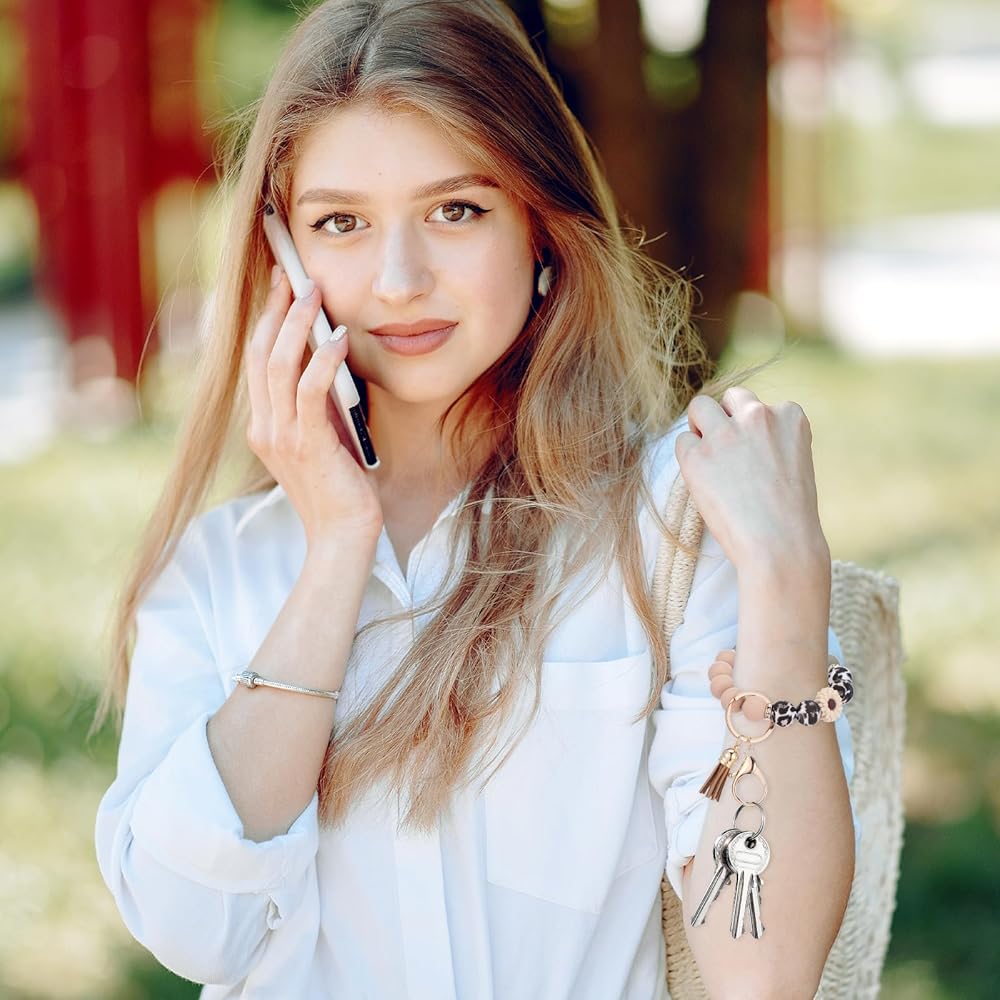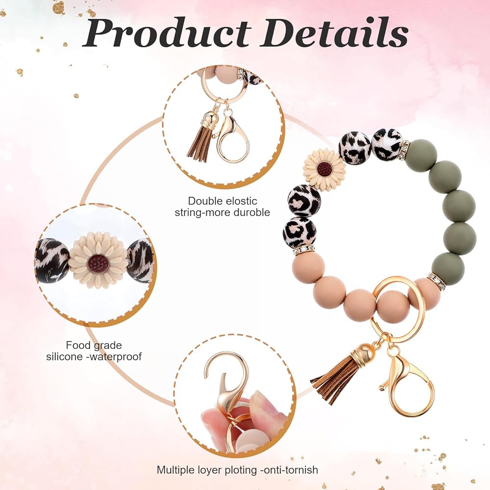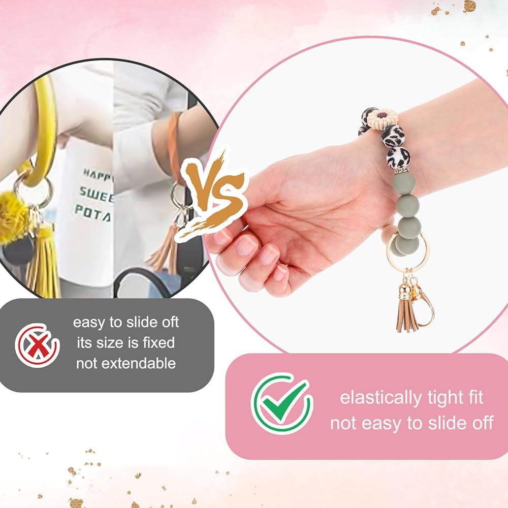 Comfortable and Durable Wear: Key chains women cute made to last! Crafted from high-quality silicone, our keychains for women feature gold-plated keyrings and PU leather tassels. The beads of key ring bracelet are smooth and won't scratch your skin or cause irritation. The silicone Key wristlet is soft and comfortable, with a stretch cord that ensures durability and a secure fit for most women's wrists.