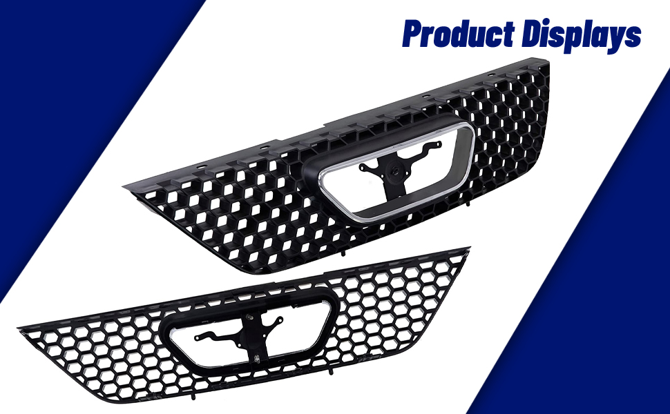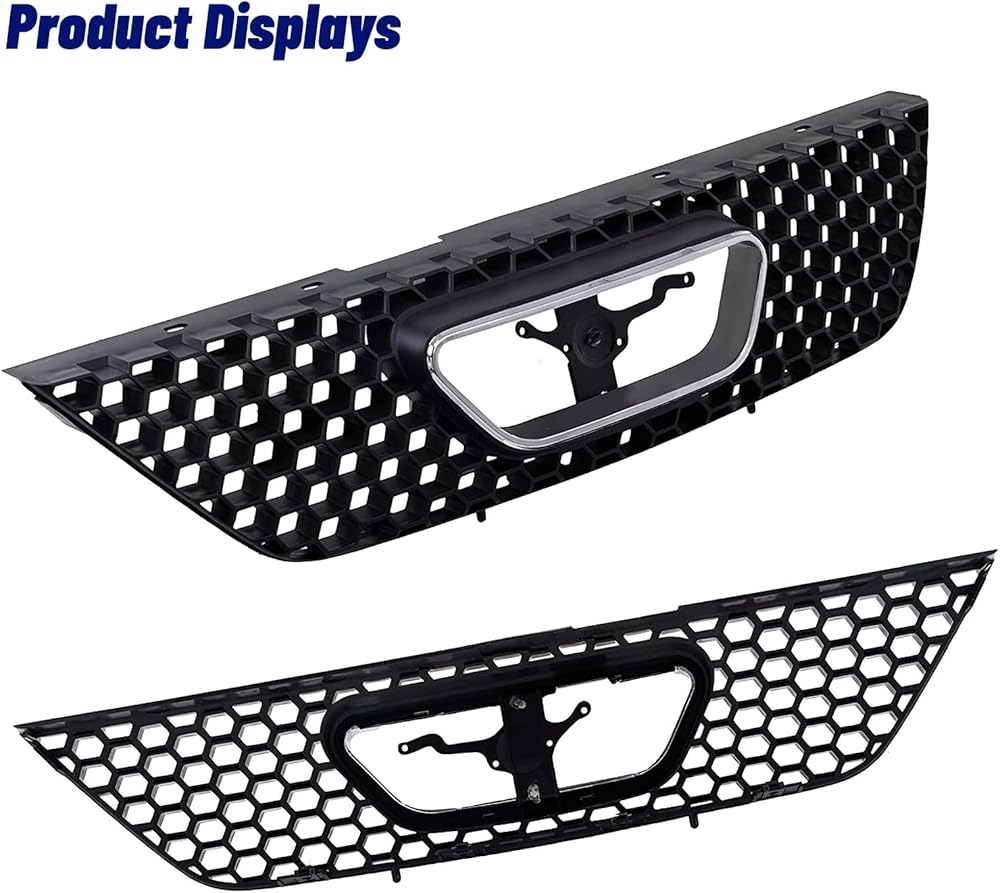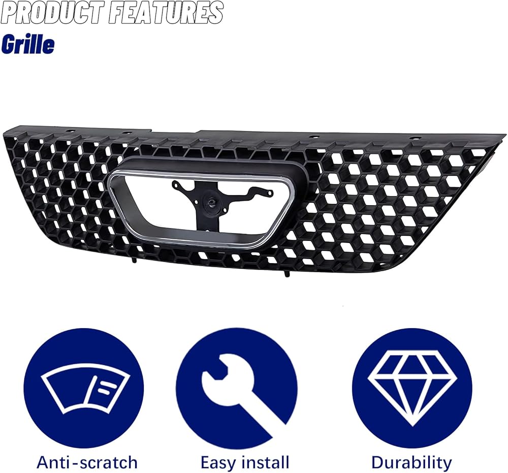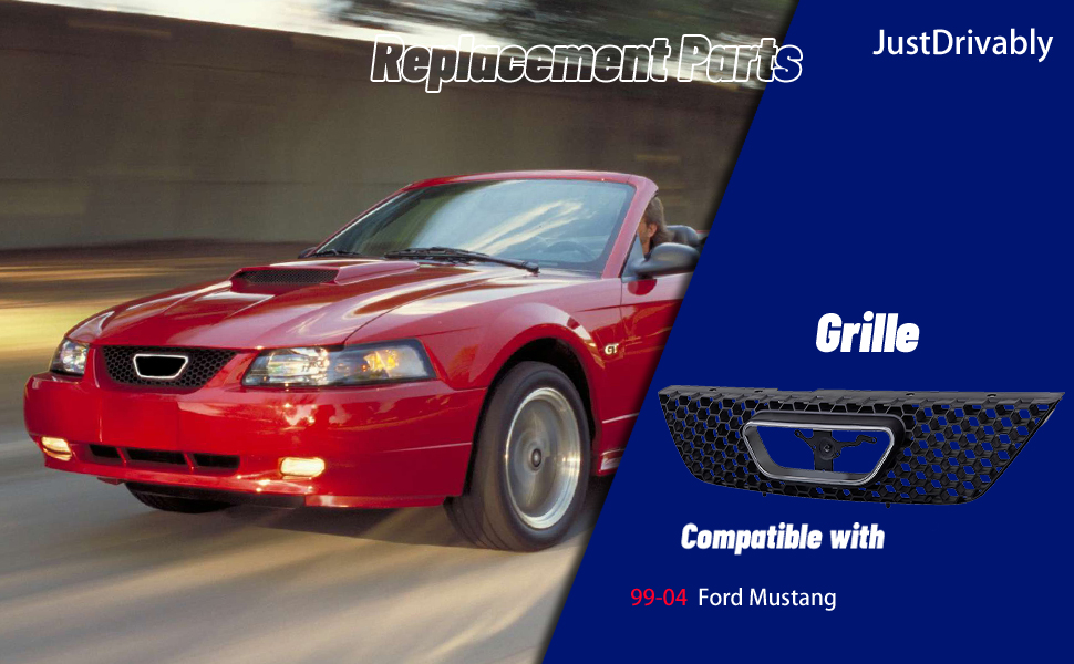 قطع غيار مجموعة شبكة الشبكة الأمامية مع غلاف أسود وإدراج مع زخرفة قولبة لفتح شعار الكروم متوافقة مع Ford Mustang 1999 2000 2001 2002 2003 2004