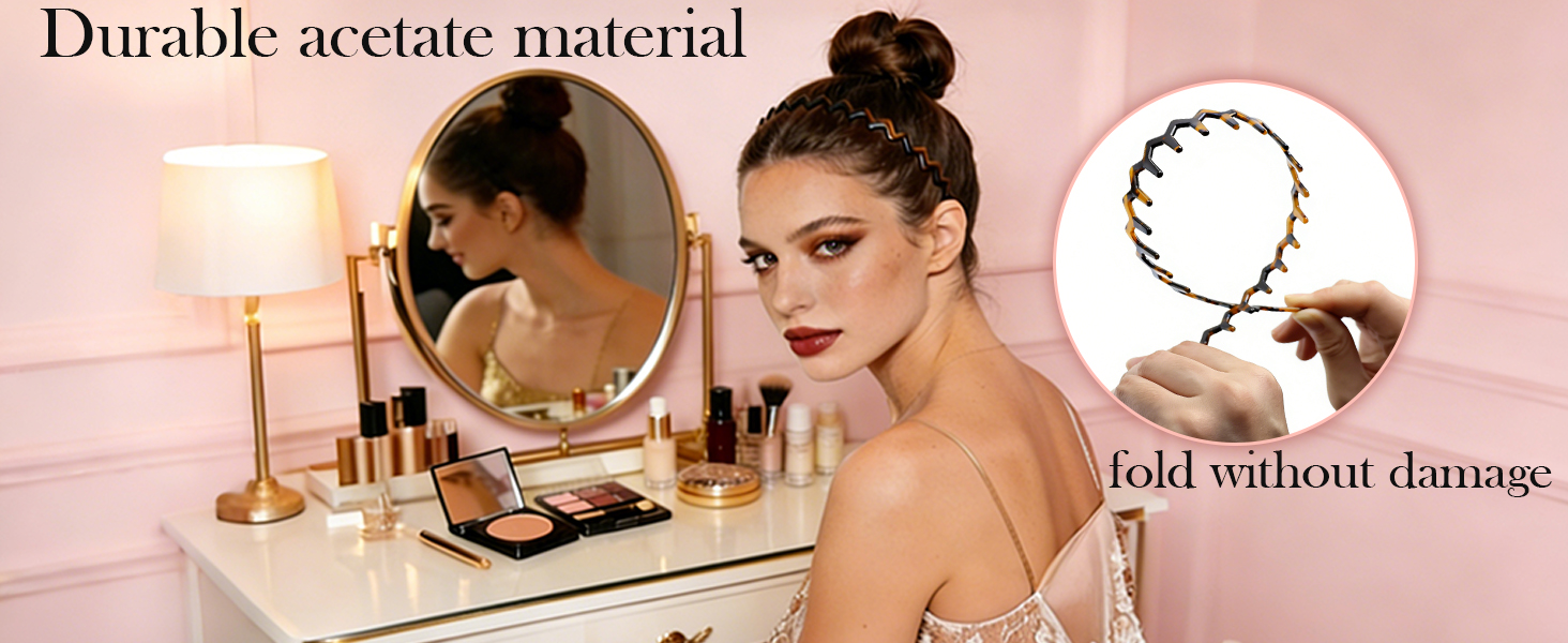 أسيتات السليلوز الفاخر - مصنوعة من أسيتات السليلوز الفاخر، عصابات الرأس العريضة للنساء أكثر نعومة وفخامة من البلاستيك العادي. سطح أملس يمنع التمزق أو التشابك، بينما تضمن المادة المتينة استخدامًا طويل الأمد وسهولة العناية. يحافظ الملمس المرن على تسريحات الشعر بشكل آمن مع راحة لطيفة، مما يجعلها إكسسوارات شعر يومية مثالية