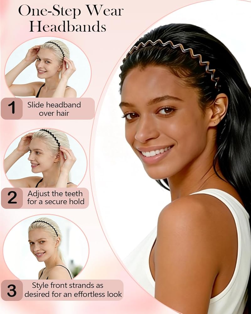قبضة مضادة للانزلاق - تتميز بعصابة رأس بتصميم أسنان، هذه العصابات المضادة للانزلاق للسيدات تعمل على ترويض الذباب بقوة وتبقى ثابتة طوال اليوم. لا يوجد تغيير أو قرص، مثالي للشعر السميك أو الرقيق أو المجعد أو المستقيم. يمكن الاعتماد عليه للتمرينات والسفر والتصفيف اليومي كإكسسوارات شعر عملية
