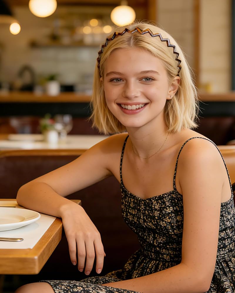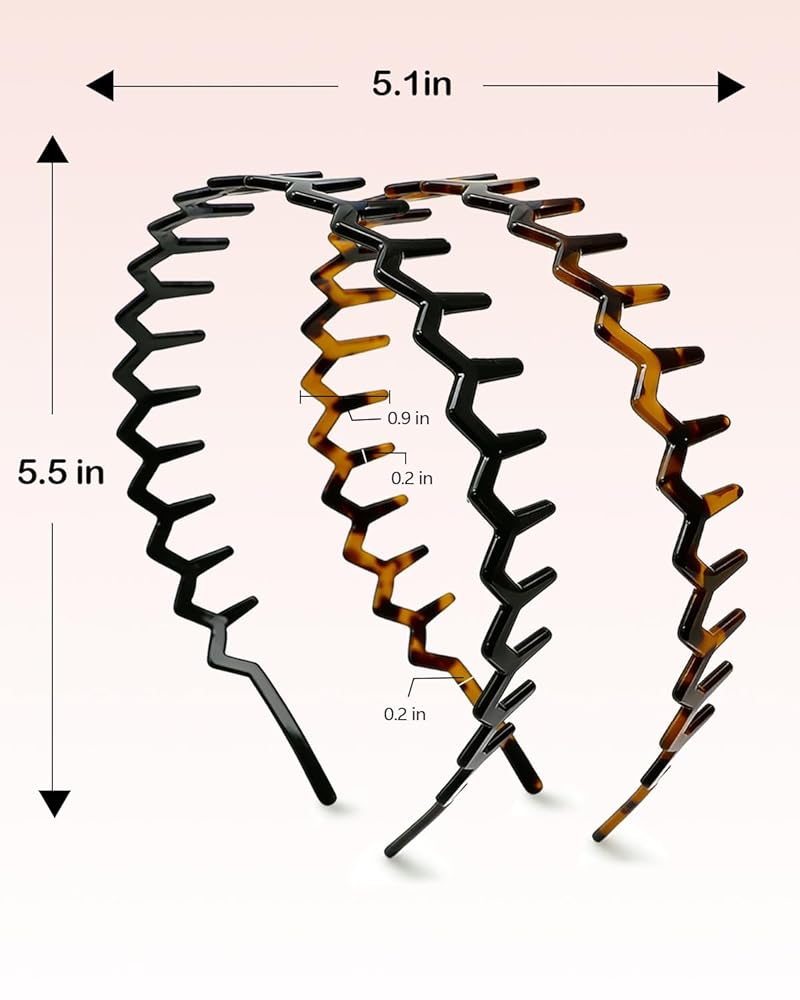 عصابات رأس Sizobi Zig Zag للنساء، عصابة رأس مشط غير قابلة للانزلاق، إكسسوارات عصرية، عصابات رأس مموجة مريحة مع أسنان، أسيتات السليلوز الأسود والسلحفاة، هدايا مثالية للنساء قطعتين