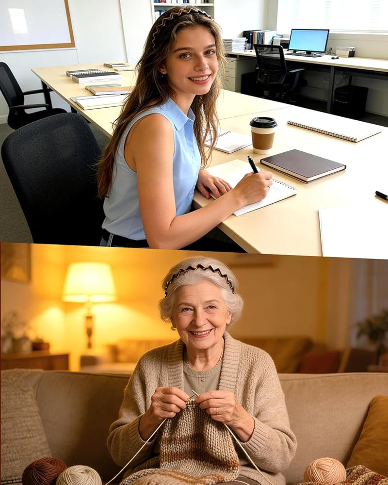 ملاءمة مريحة - سهلة الارتداء مع التمدد الصحيح، عصابات الرأس السميكة للنساء تناسب بشكل مريح دون إيذاء الأذنين. هيكل خفيف الوزن يمنع الضغط أو السحب، بينما تحمي الأسنان المستديرة الشعر من التلف. مستقرة ومريحة طوال اليوم، عبوتان من عصابات الرأس المتعرجة للسيدات تناسب جميع أنواع الشعر للعمل والمهمات والملابس الكاجوال.