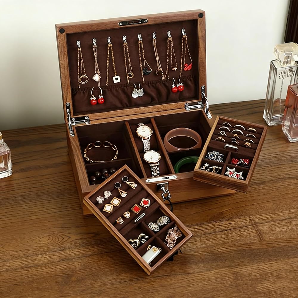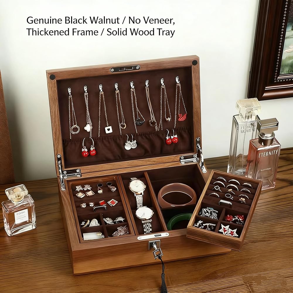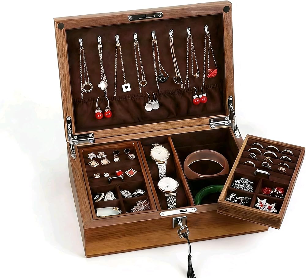 جزء معقول - صندوق المجوهرات الجميل الخاص بنا هو عنصر أساسي لأي جامع مجوهرات. مع مقصورات مصممة خصيصًا للساعات والأقراط والخواتم والقلائد والأساور.