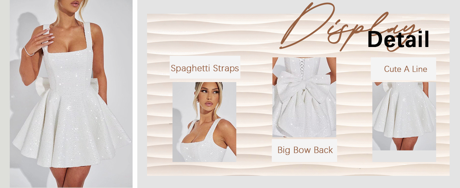 • المزايا: فساتين حفلة موسيقية قصيرة بأشرطة سباغيتي لامعة من الترتر للنساء، فساتين لطيفة لحفلات العودة للوطن برقبة مربعة مع فيونكة 2025، فستان رسمي قصير لحفلات الكوكتيل، تنورة لامعة على شكل حرف A، مطوية، خيط خلفي قابل للتعديل، حمالة صدر مدمجة، أربطة من الخلف، تظهر منحنيات جسمك الساحرة بالكامل.