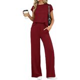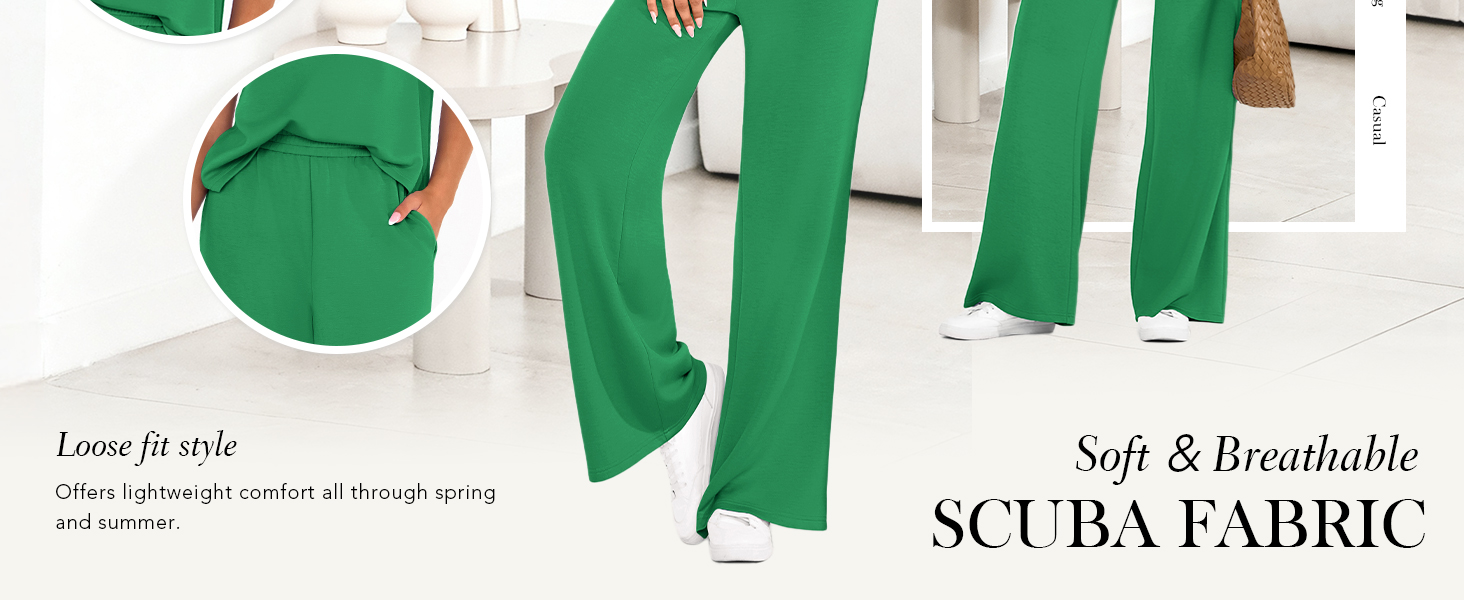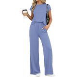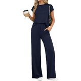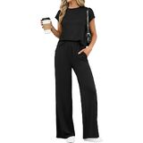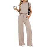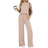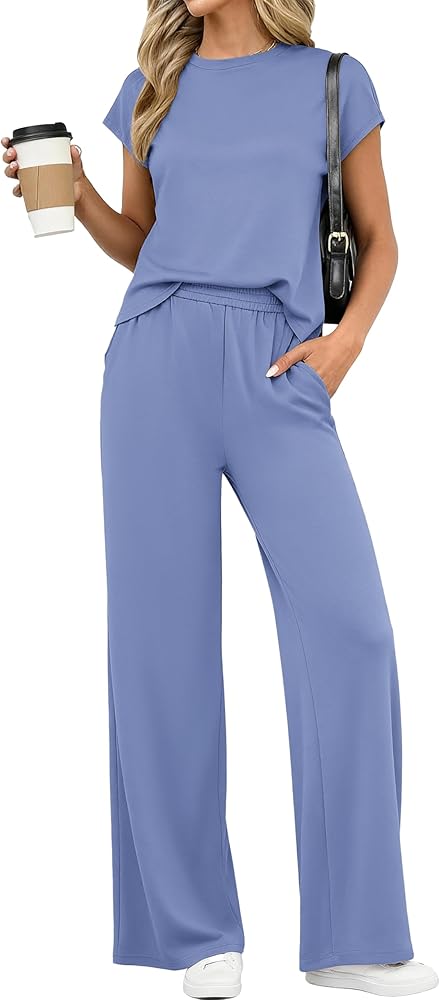 • المزايا: طقم مكون من قطعتين للسيدات للصيف، مجموعات متطابقة من الملابس النسائية، طقم سراويل بأرجل واسعة للسيدات من قطعتين، أطقم ركض بأكمام قصيرة للسيدات قطعتين، بدلات رياضية للنساء، مجموعة ملابس مريحة للنساء، ملابس سفر للنساء، ملابس مريحة في المطار للنساء 2026، ملابس صيفية للسيدات عصرية، رقبة دائرية، حزام خصر مرن، مع جيوب