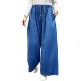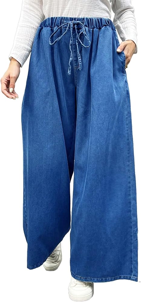 Elevate your wardrobe with these women's plus size loose wide - leg denim pants. These wide - leg drawstring jeans are a must - have for every fashion - conscious woman. The drawstring waist not only provides a customizable fit but also adds a chic detail. Crafted from top - notch denim, they offer long - lasting wear while keeping you comfortable throughout the day. The wide - leg design flatters all body types and allows for easy movement. With practical side pockets, you can keep your daily items close at hand. Whether you're going for a laid - back look with a simple tee or dressing up with a blouse, these pants are the perfect choic