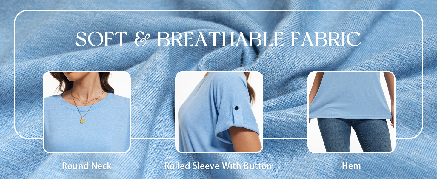 • مريحة: قمصان صيفية للنساء 2025، خامة ناعمة جدًا ومسامية، تنسدل بشكل جميل دون أن تلتصق، تي شيرت أنيق وملاءمة مثالية، مثالية للأيام الدافئة أو الطبقات عندما تنخفض درجات الحرارة