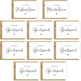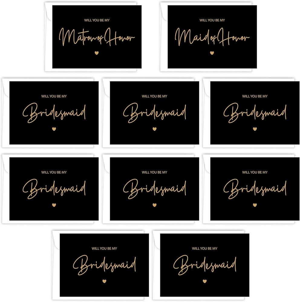Set Include-This 10-pack bridesmaid proposal cards set includes 8 will you be my bridesmaid cards,1 maid of honor card and 1 matron of honor card.Designed with foli accents,these elegant bridesmaid cards ensure a polished proposal during bachelorette parties or bridal events. Includes matching envelopes for instant, Instagram-ready presentation.