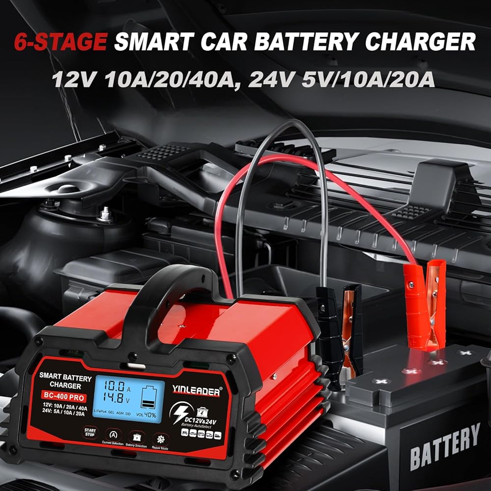شاحن بطارية 40 أمبير، شاحن بطارية ذكي من حمض الرصاص 12 فولت/24 فولت، شاحن 12 فولت LiFePO4 لبطارية السيارة، جهاز صيانة تلقائي للبطارية للسيارة والدراجة النارية وجزازة العشب وبطاريات حمض الرصاص للقوارب البحرية