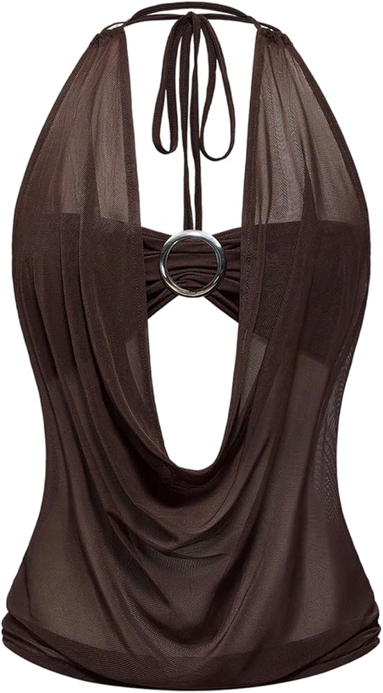• Features: Womens halter top features cut out, halter neck, tie back, backless, sleeveless, slim fit, draped front