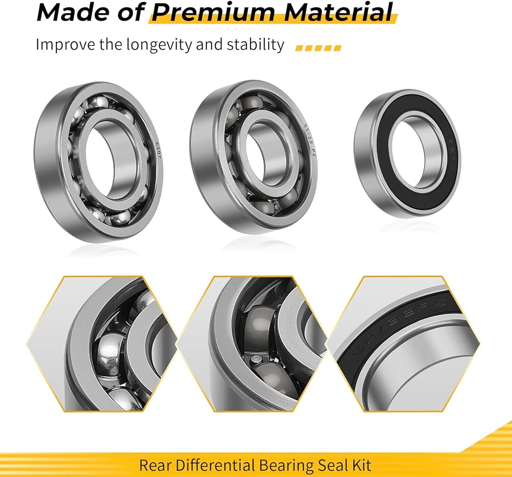 Feature: The bearings are made of high-strength steel, which is resistant to wear and corrosion for a longer life. The seals, made of premium rubber materials, have good sealing properties and prevent the entry of mud, sand and dust