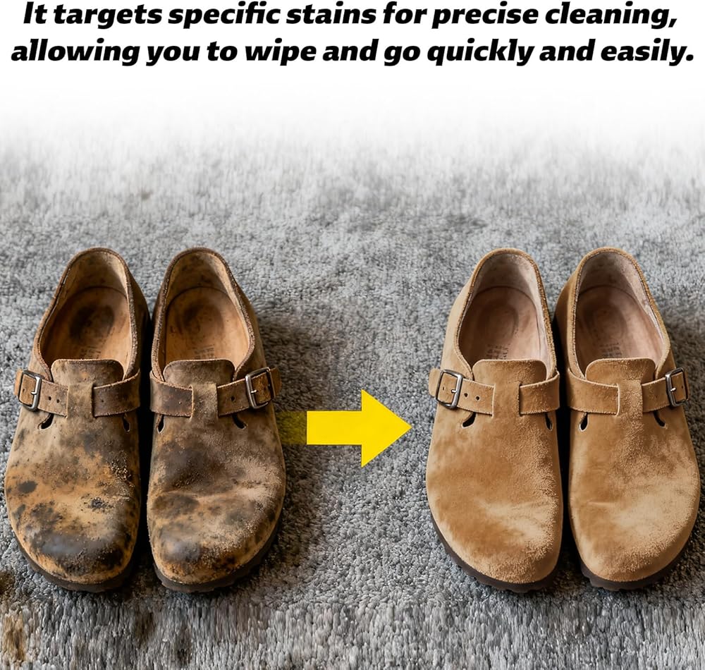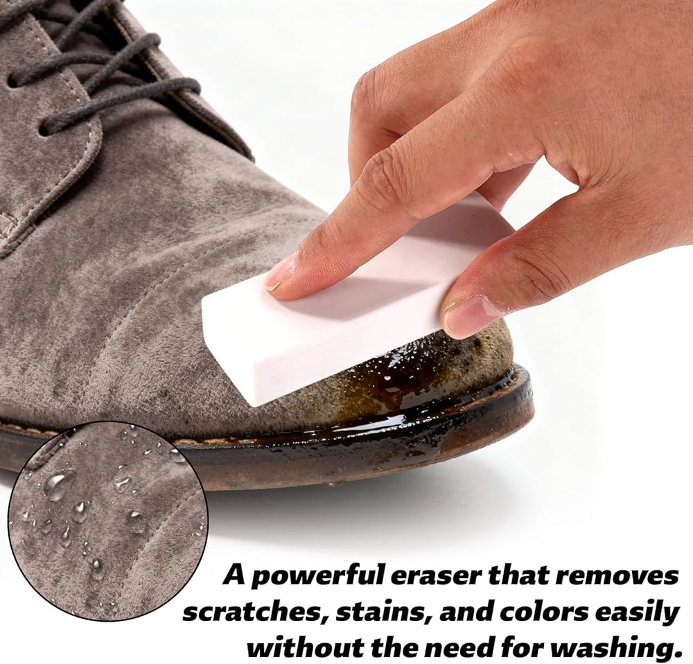 Professional Shoe Cleaning Tool: This suede cleaning brush features a 2-in-1 design, with one side offering gentle pressure and the other powerful force. It can gently lift away dirt, scuff marks, and stains. Its delicate bristles effectively clean without harming the delicate surface fibers. The eraser can clean surface scratches, oil stains, coffee stains and more.