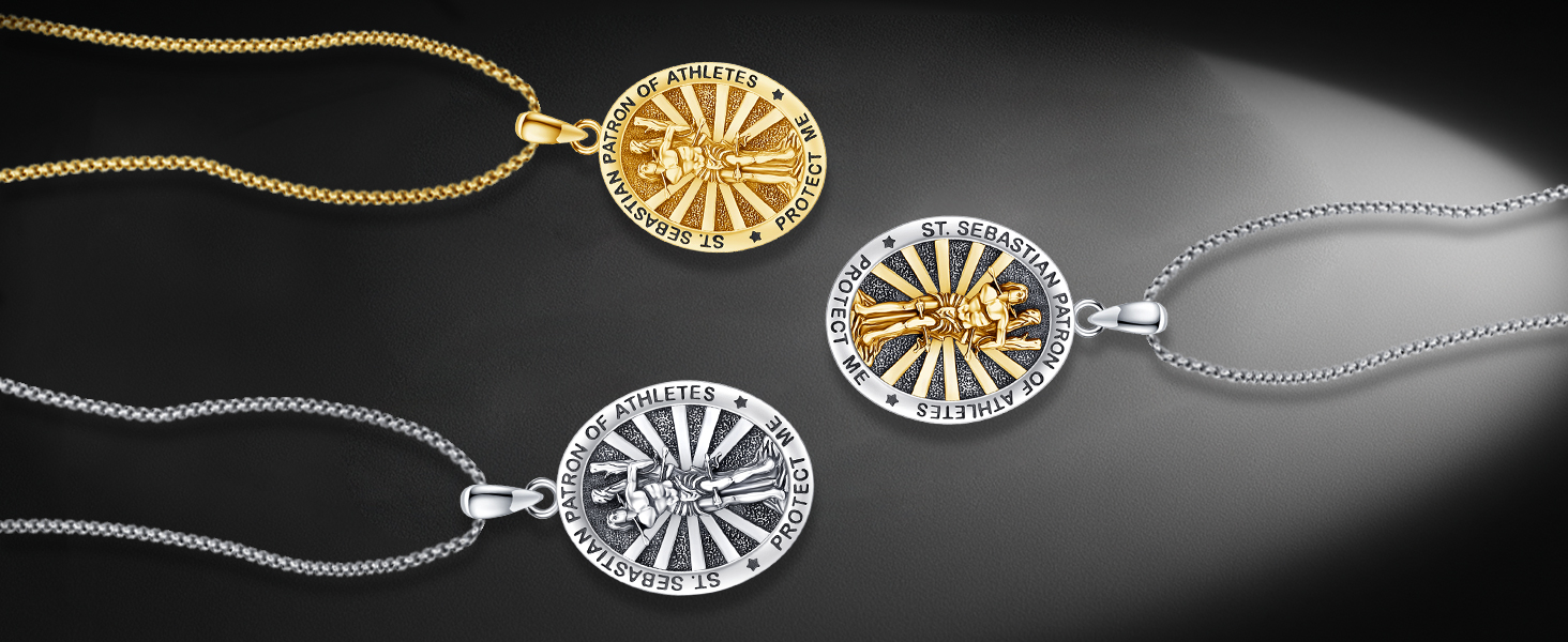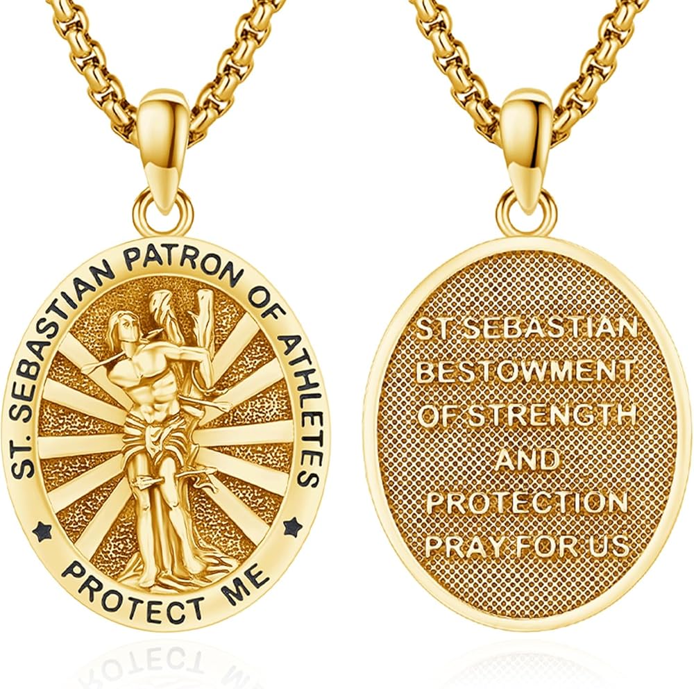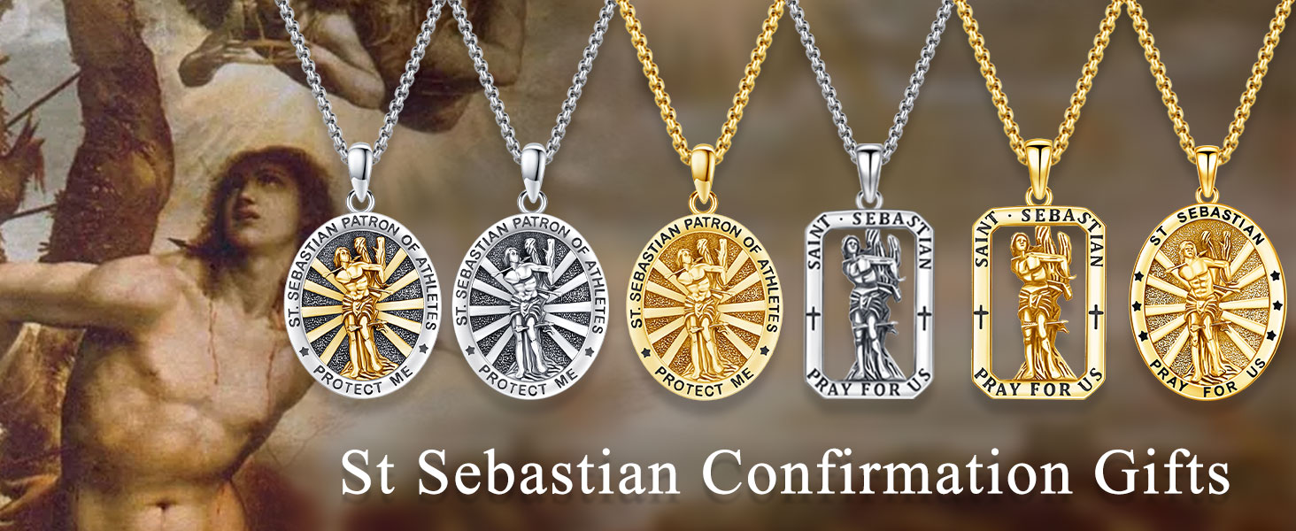 • هدية تأكيد القديس سيباستيان- القديس سيباستيان هو أحد القديسين الكاثوليك. وهو شفيع الرياضيين والجنود، ويُعتقد أنه يتمتع بقوته البدنية وقدرته على التحمل. توفر قلادة سانت سيباستيان المأوى والقوة لعشاق الرياضة
