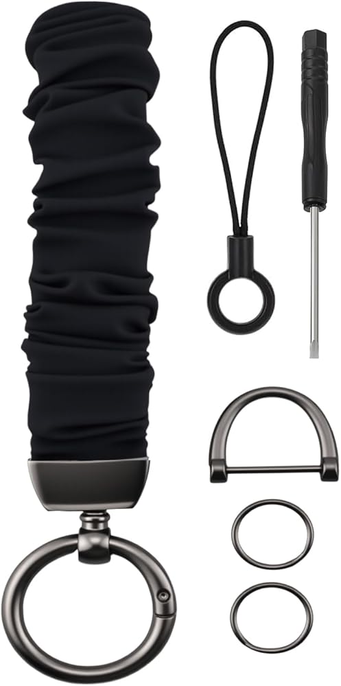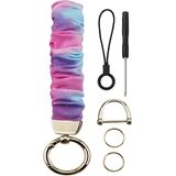 Stretchy Scrunchie Keychain Wristlet, Key Chain with D Ring Lanyard Strap for Women Men Car Keys ID Badges Wallet