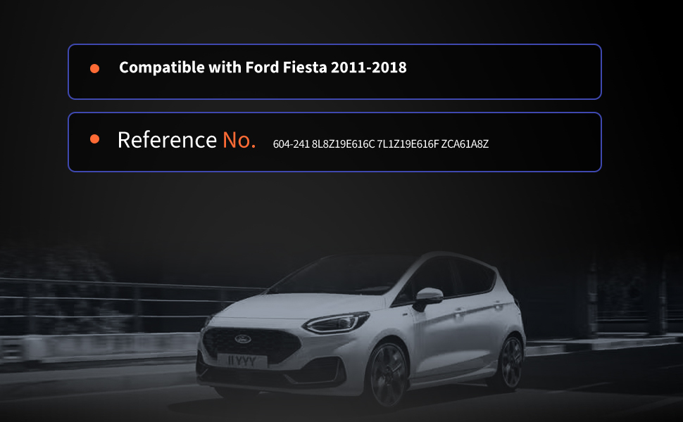 التوافق: هذا الجزء متوافق مع Ford Fiesta 2011 2012 2013 2014 2015 2016 2017 2018. هام: يرجى التحقق جيدًا من سنة سيارتك وتصنيعها وطرازها باستخدام أداة البحث عن الأجزاء من Amazon أو أداة توافق VIN قبل الطلب