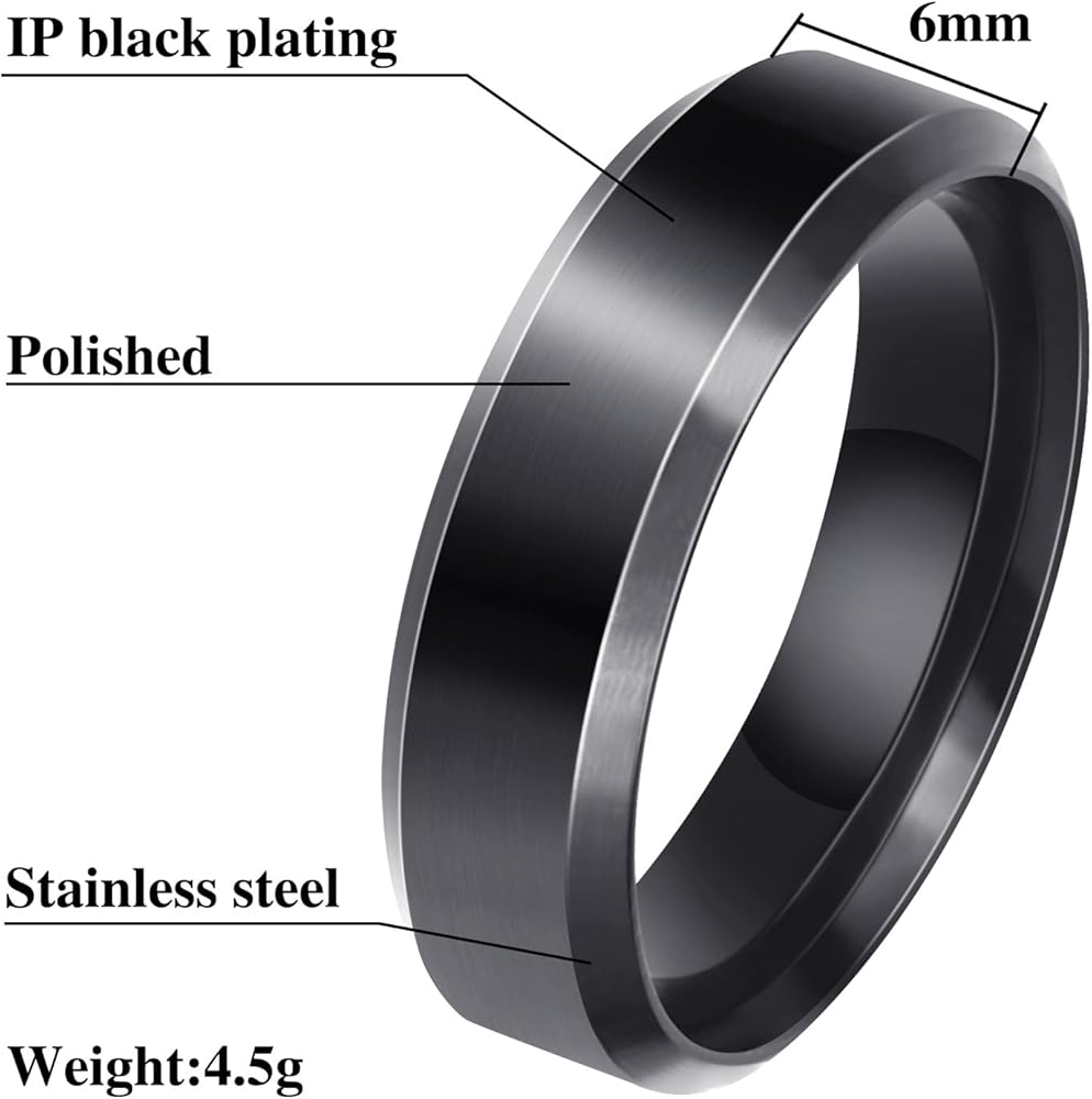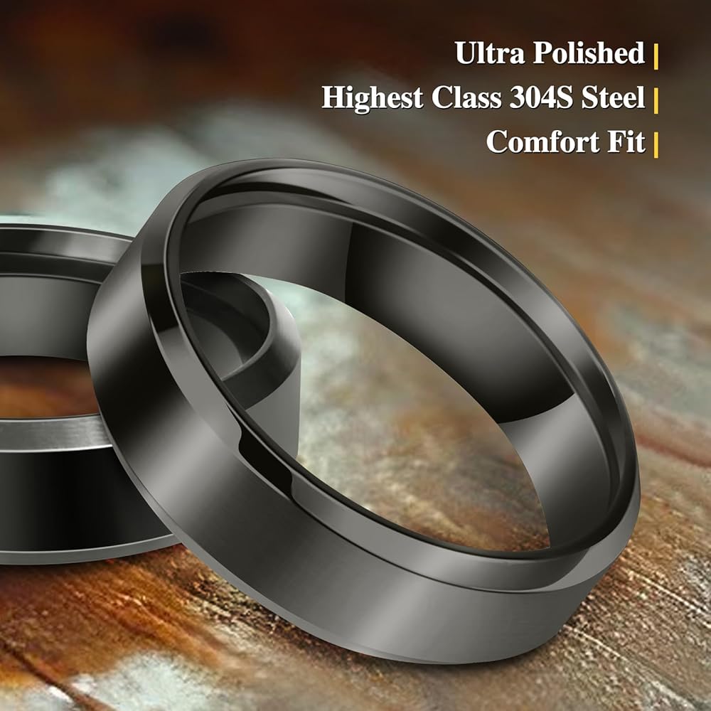 【تصميم كلاسيكي】- حلقة مثالية من الفولاذ المقاوم للصدأ بعرض 6 مم للرجال والنساء، لمسة نهائية مصقولة بحافة مشطوفة ووجه داخلي مصقول للغاية.