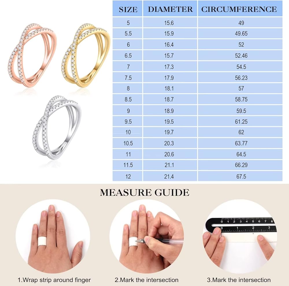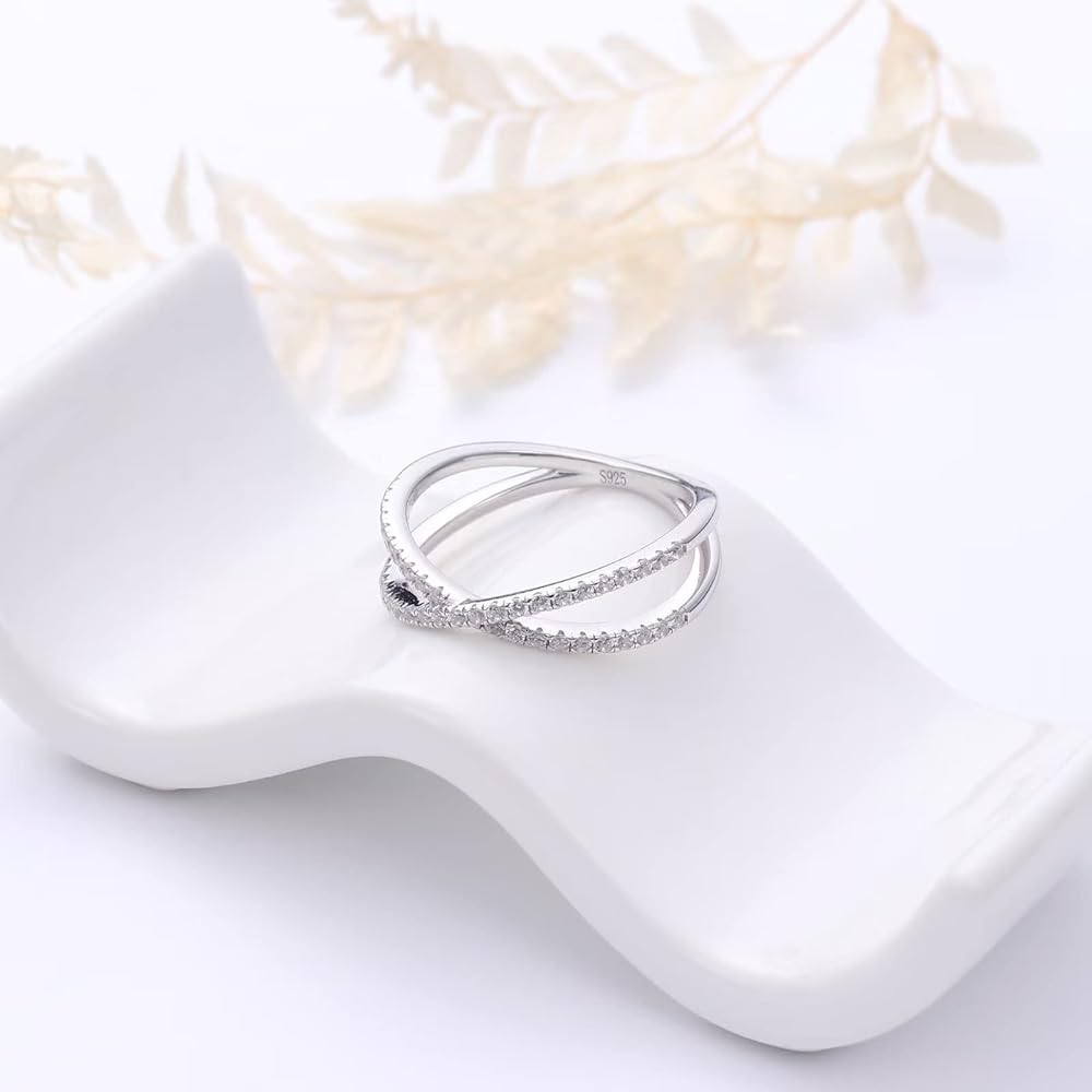 حلقات متقاطعة من الفضة الإسترلينية S925: تتكون الحلقة المتقاطعة من حلقتين مطروقتين متقاطعتين على شكل "x". هذا الخاتم ذو التصميم البسيط مثالي للارتداء يوميًا وفي المناسبات الخاصة. تبدو حلقة Criss Cross رائعة في كلتا الحالتين. مثالية كهدية.