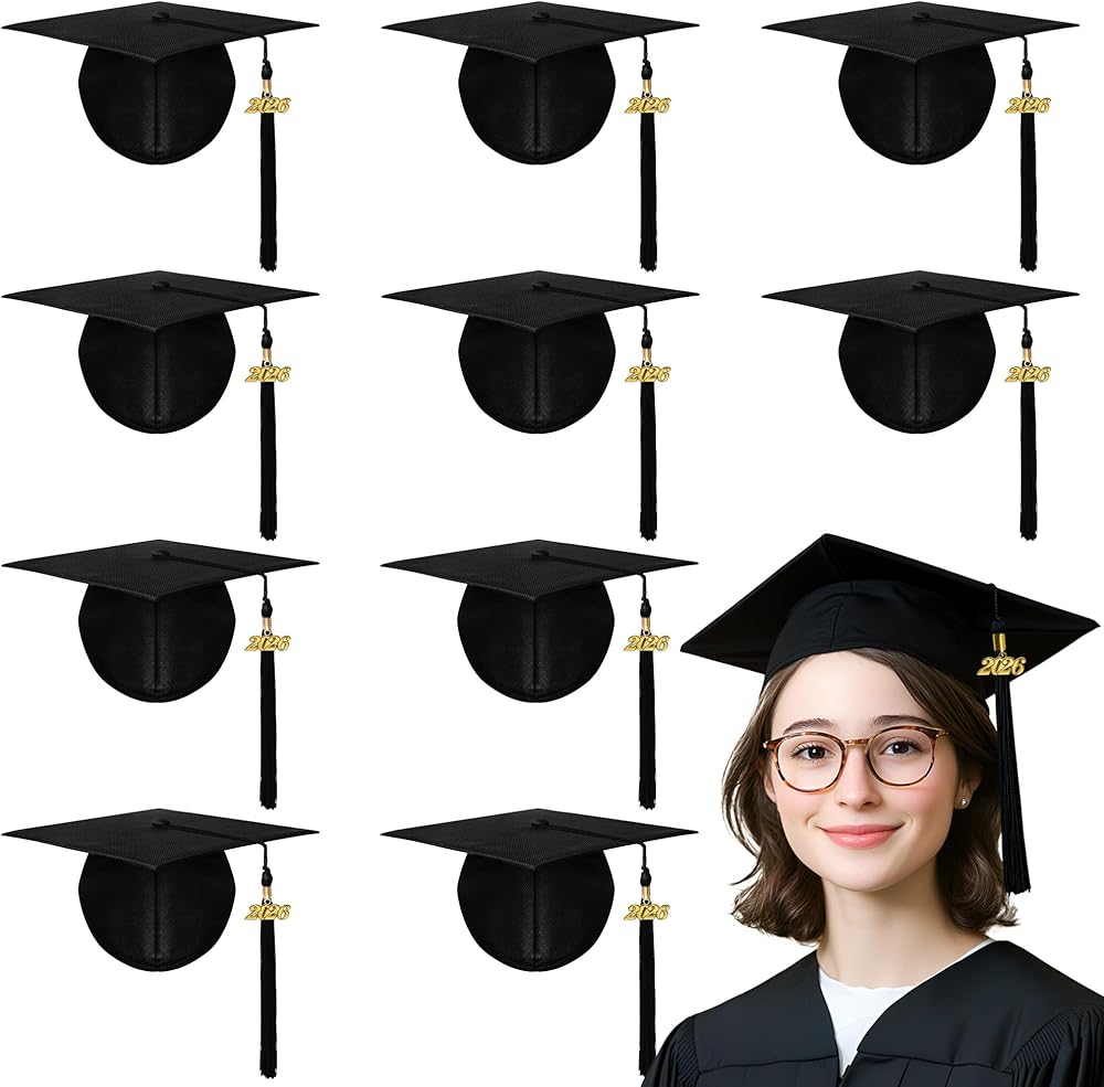 عبوة من 10 قبعات تخرج غير لامعة مع شرابة 2026 بكميات كبيرة للرجال والنساء في المدارس الثانوية والعازبة