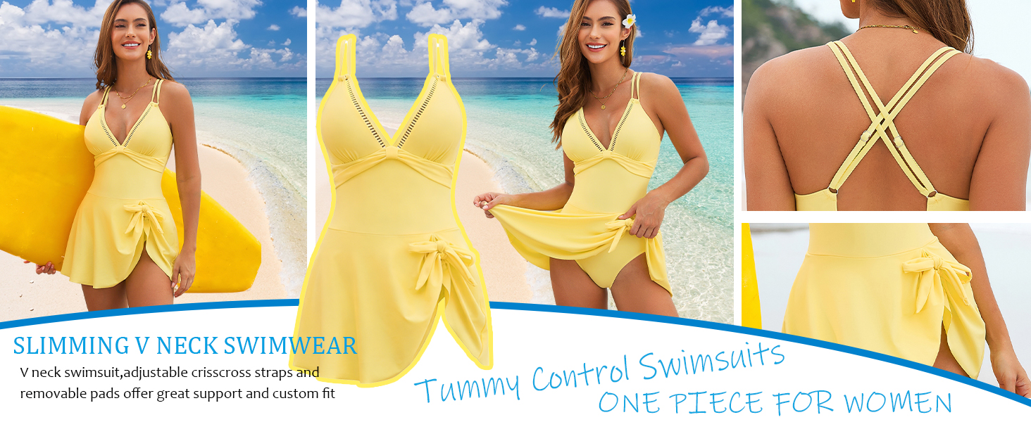 تغطية متوسطة وداعمة: يحتوي ثوب السباحة هذا على جزء سفلي مدمج يجمع بين التغطية الكاملة لفستان السباحة ووظيفة بدلة السباحة المكونة من قطعة واحدة. التنورة طويلة بما يكفي لتغطية الأماكن ولتكون متواضعة، وعقدة التعادل عند الحاشية تجعلها أنثوية وجذابة، وحزام كتف مزدوج الطبقات قابل للتعديل ووسادات مثلثة قابلة للإزالة توفر دعمًا إضافيًا. تسمح لك باللعب في حديقة مائية دون القلق بشأن الطفو.