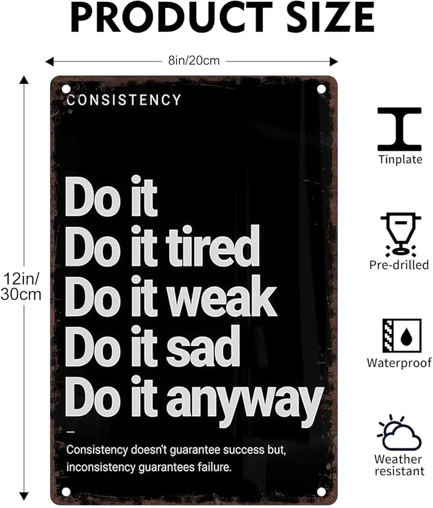 علامة عتيقة Do It Anyway، لوحة فنية جدارية معدنية تحفيزية لديكور المنزل وصالة الألعاب الرياضية والمكتب، ملصق لياقة بدنية مقاوم للصدأ مقاس 12 × 8 بوصة مع فتحات مثقوبة مسبقًا، هدية ملهمة للرجال والنساء