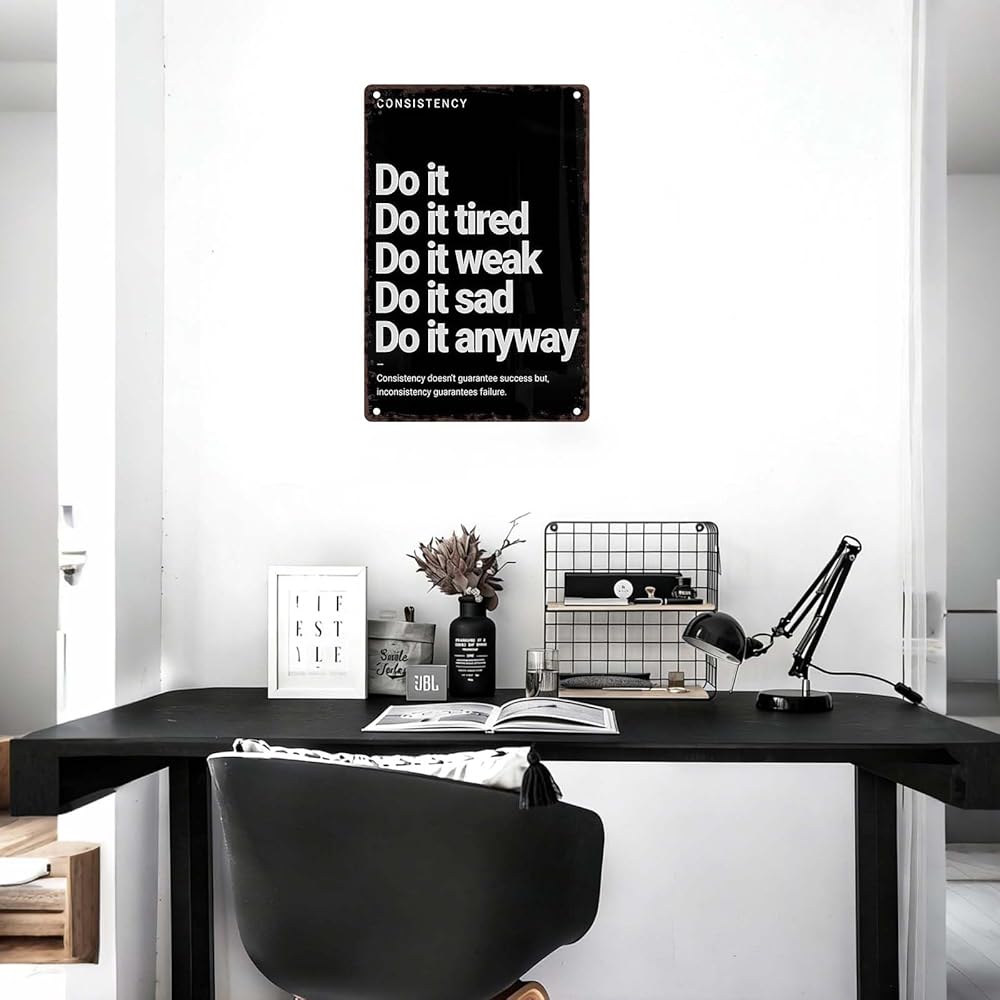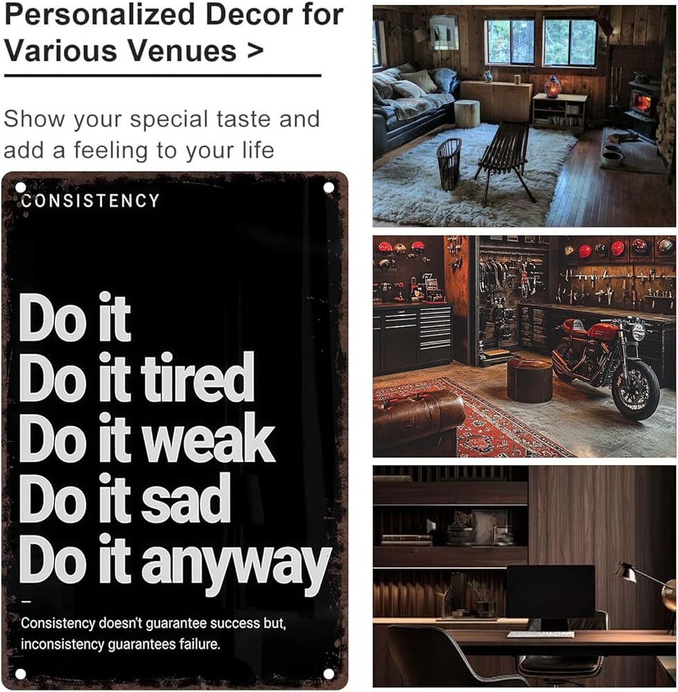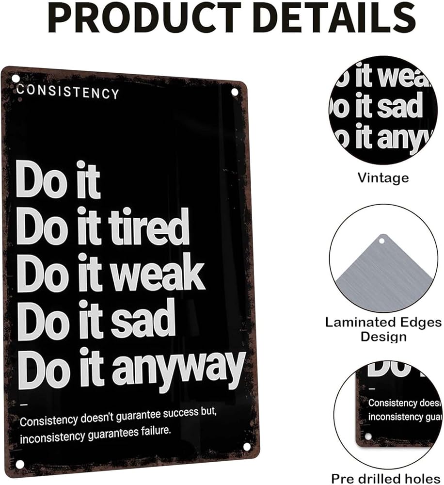 Do It Anyway Vintage Sign, Metal Motivational Wall Art for Home Gym Office Decor, 12x8 Inch Rustproof Fitness Poster with Pre-Drilled Holes, Inspirational Gift for Men Women