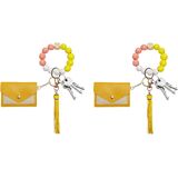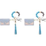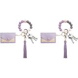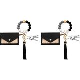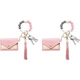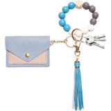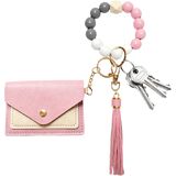 سلسلة مفاتيح مطرزة للنساء، سوار مع حامل بطاقات مزدوج، تصميم مطرز لطيف للاستخدام اليومي in Kuwait