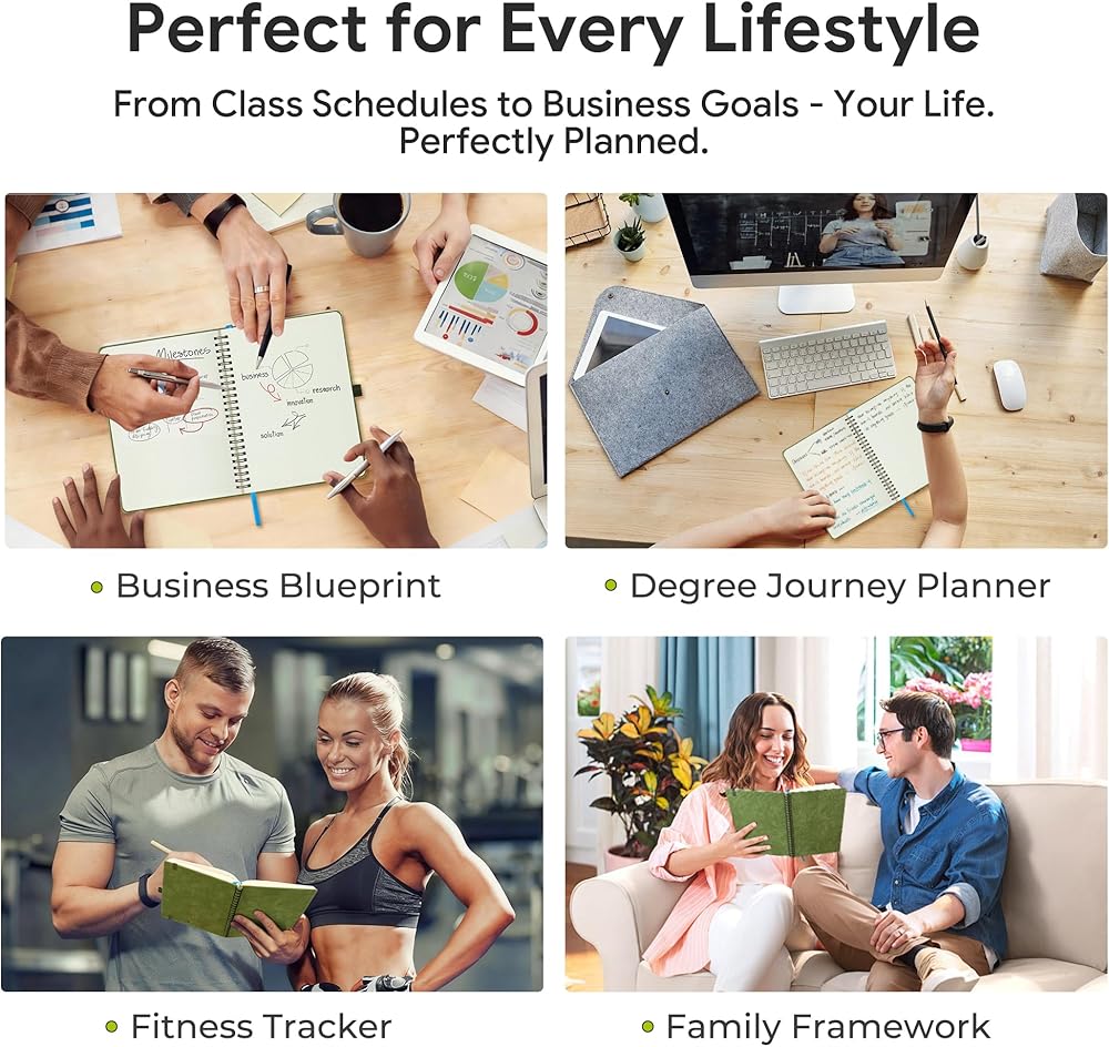 نظام الحياة المخصص: صفحات التخطيط الأسبوعية والشهرية والسنوية وتذكيرات العطلات على مدار العام ومنطقة تسجيل أعياد الميلاد للأقارب والأصدقاء؛ قم بإعداد سجل الإلهام والخطط باستخدام منطقة الملاحظات النقطية؛ وفي الوقت نفسه، يوفر المخطط الأسبوعي التخطيط للسفر وإدارة نفقات الفواتير