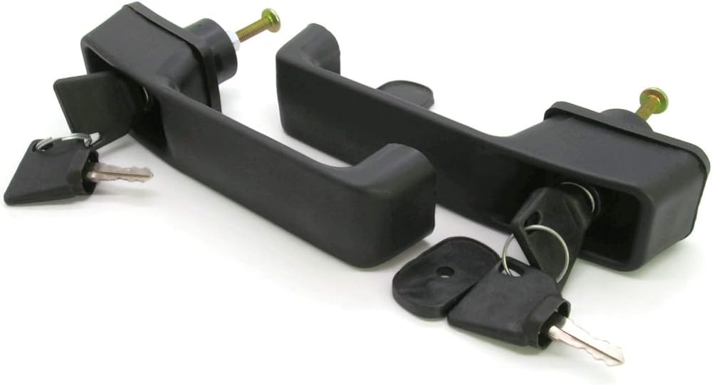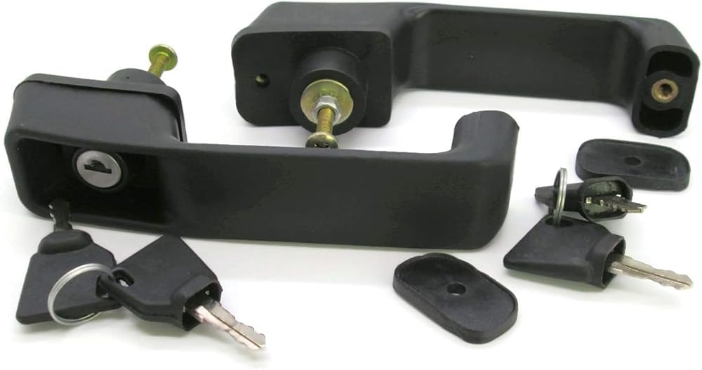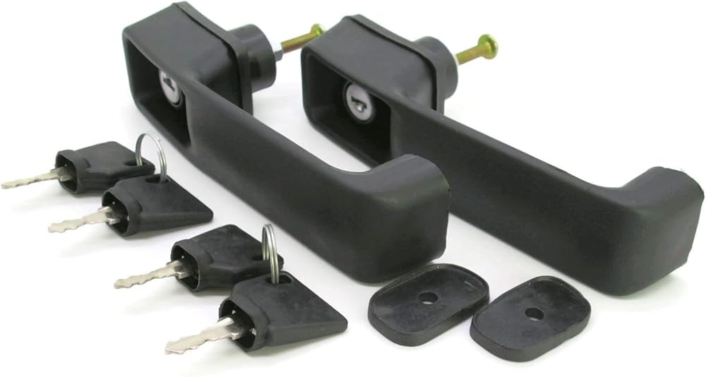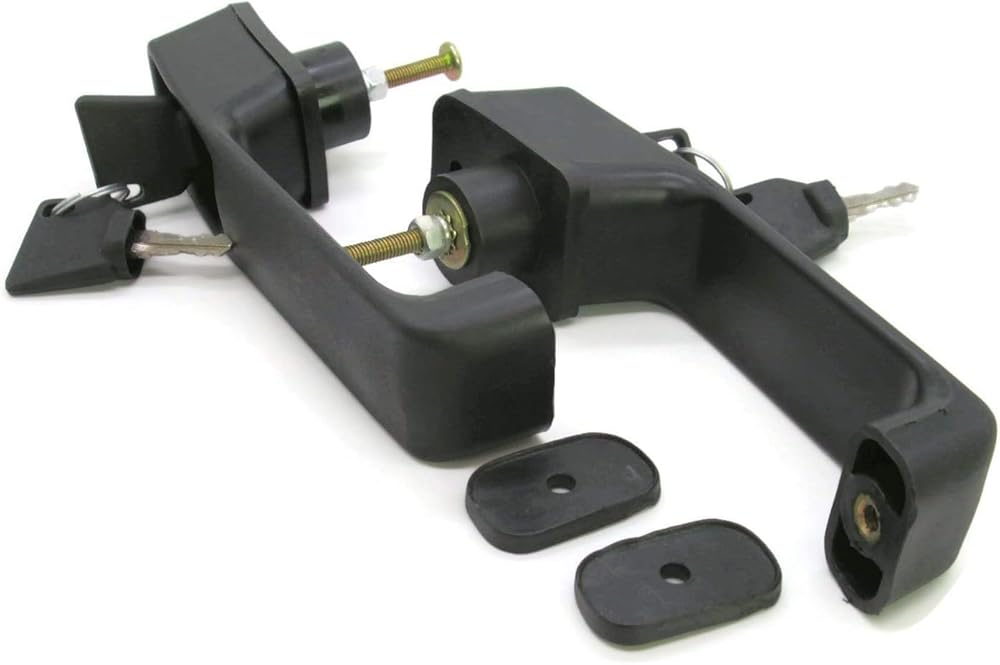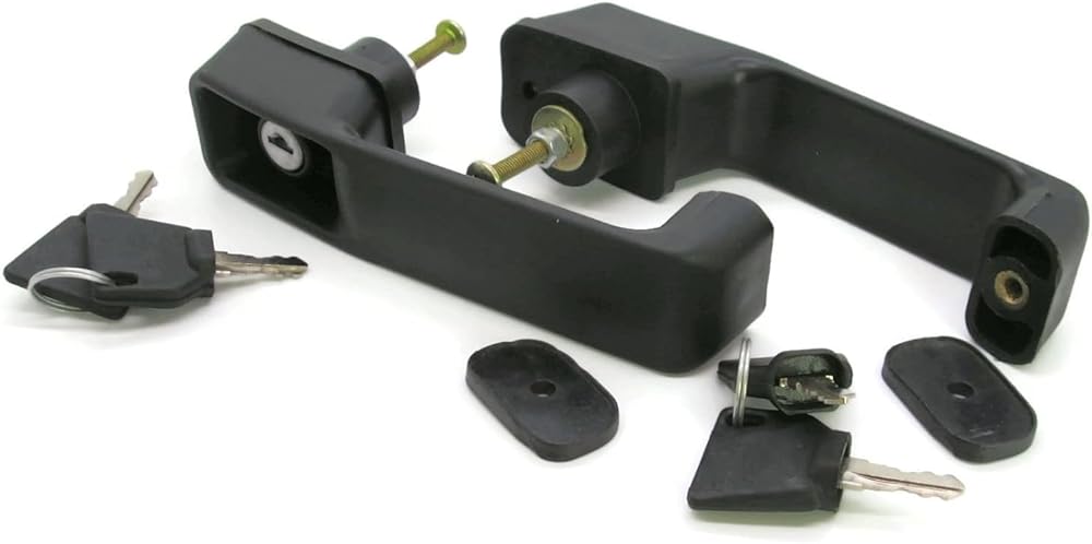 This is a brand new aftermarket replacement door handle set for JCB backhoe models. It includes 2 door handles with 4 keys, and is designed to fit various JCB models, including JS130, JS140, JS160, JS180, JS200, JS220, JS240, JS260, JS320, JS360, JS420, JS460, JS480, JS530, JS560, JS590, and JS750. The door handles are made of high-quality materials and are durable, ensuring long-lasting performance. They are easy to install and require no special tools. This set of door handles is a great replacement for those who are looking for a reliable and affordable solution to their JCB backhoe door handle needs.