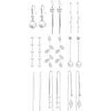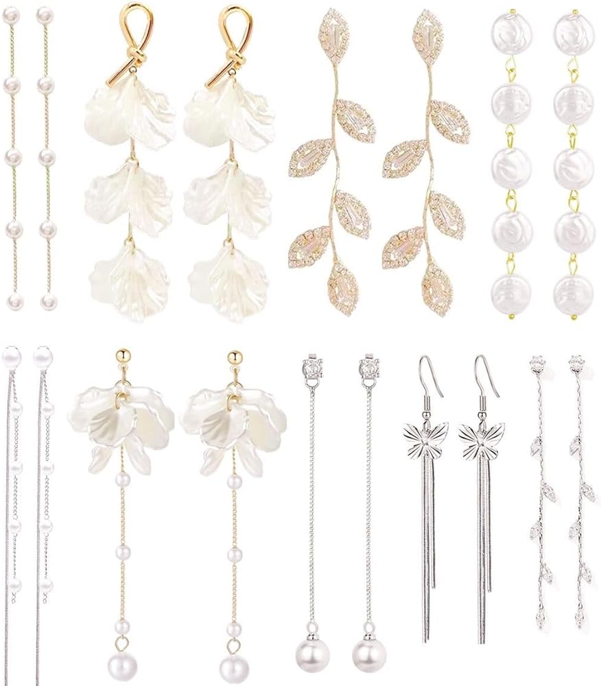أقراط اللؤلؤ للنساء 9 أزواج فضية طويلة شرابة متدلية أقراط متلألئة كريستال ليف اللؤلؤ قطرة الأقراط فراشة سلسلة الزفاف أقراط الزفاف وصيفه الشرف حفلة موسيقية التخرج مجموعة مجوهرات in Kuwait